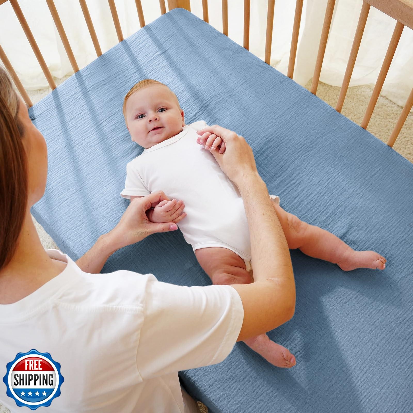 Muslin Crib Sheet 100 Cotton Baby Fitted Sheet for Boys and Girls, Ultra S