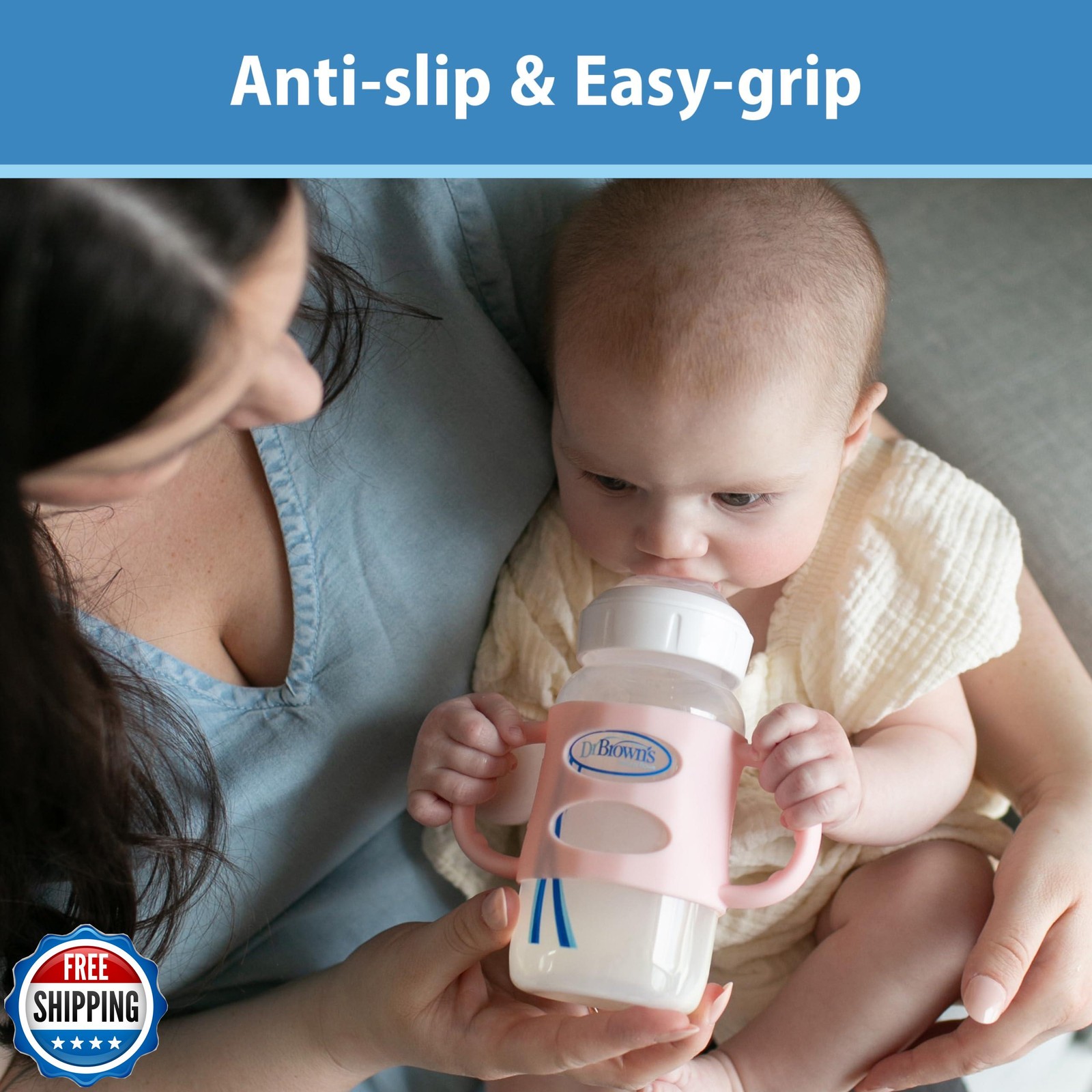 Dr. Brown's Wide-Neck Baby Bottle Handles, 100 Silicone, Easy Grip Removable
