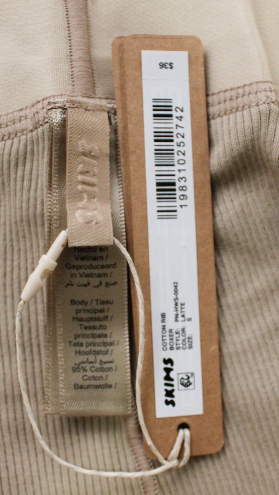как выглядит Skims Womens Breathable Stretch Cotton Rib Boxer Shorts DH3 Latte Small NWT фото