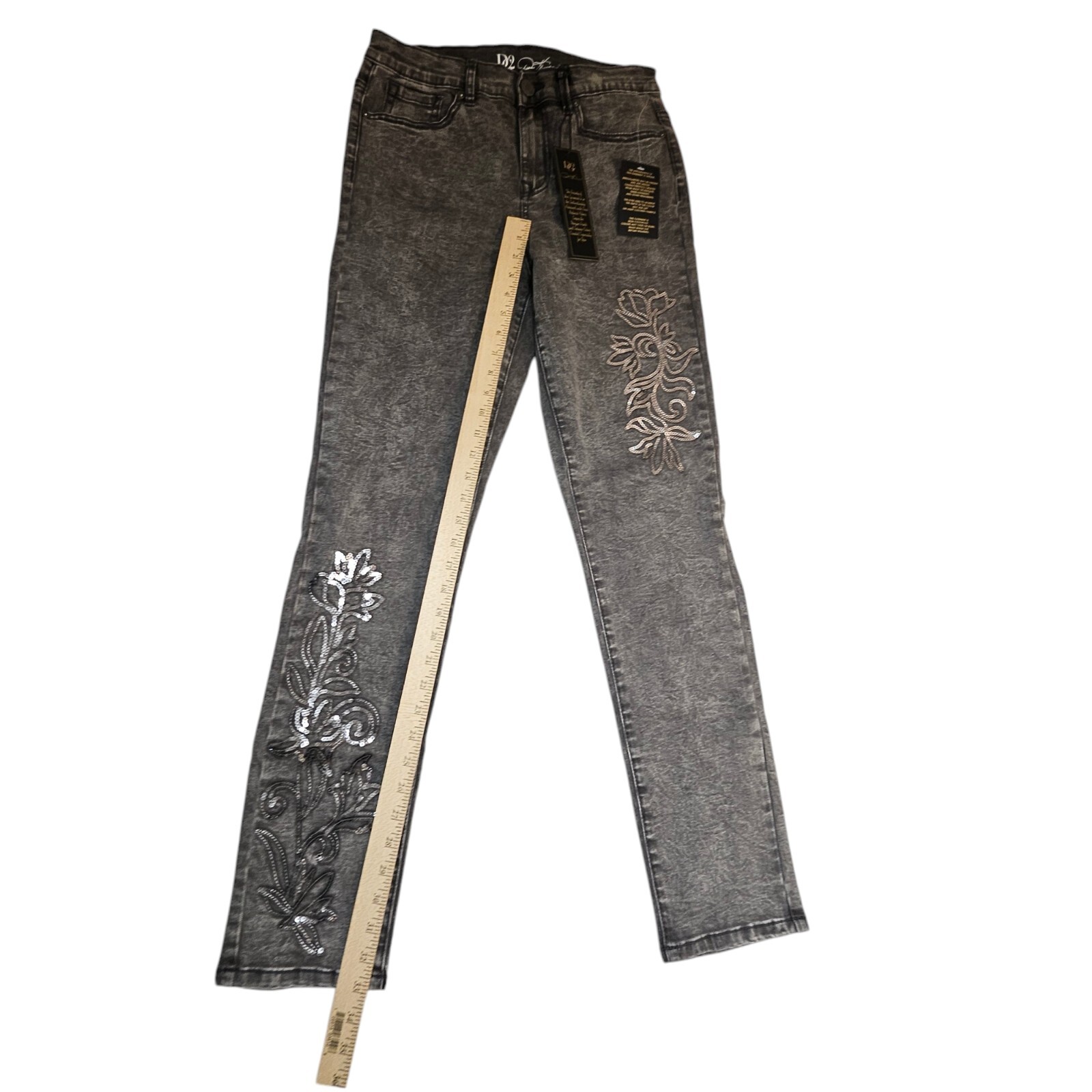 как выглядит NWT DG2 Diane Gilman Jeans Women 8T High Rise Floral Sequin Denim Gray Pants фото