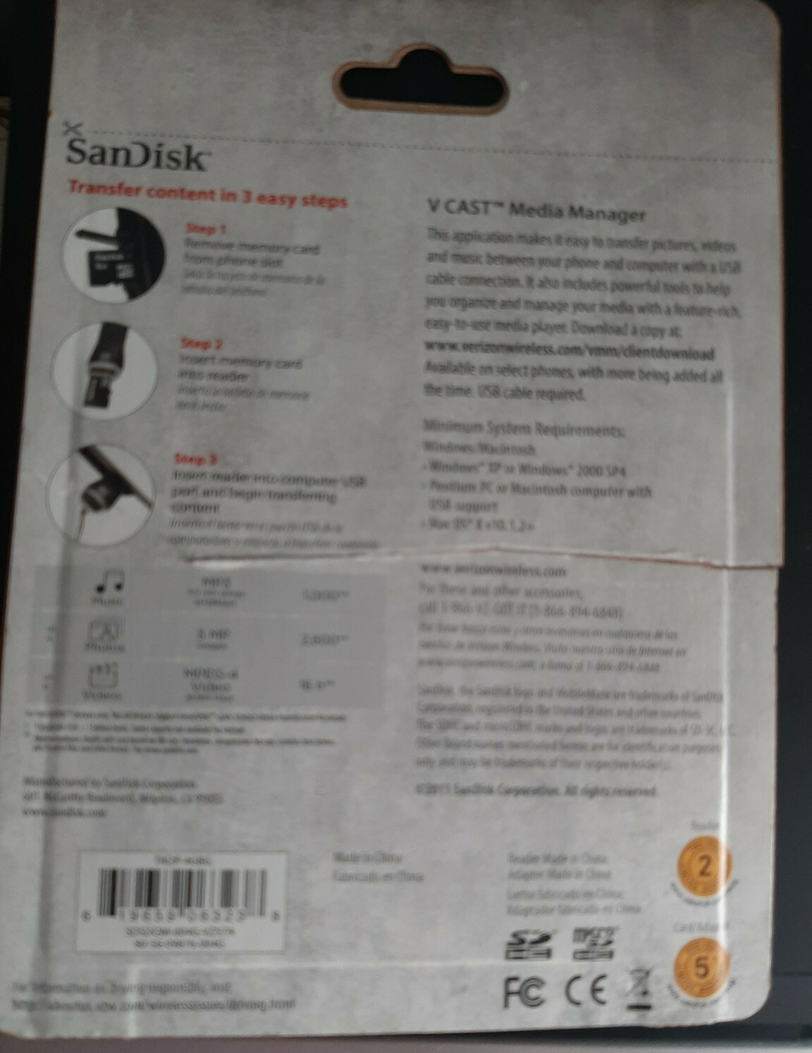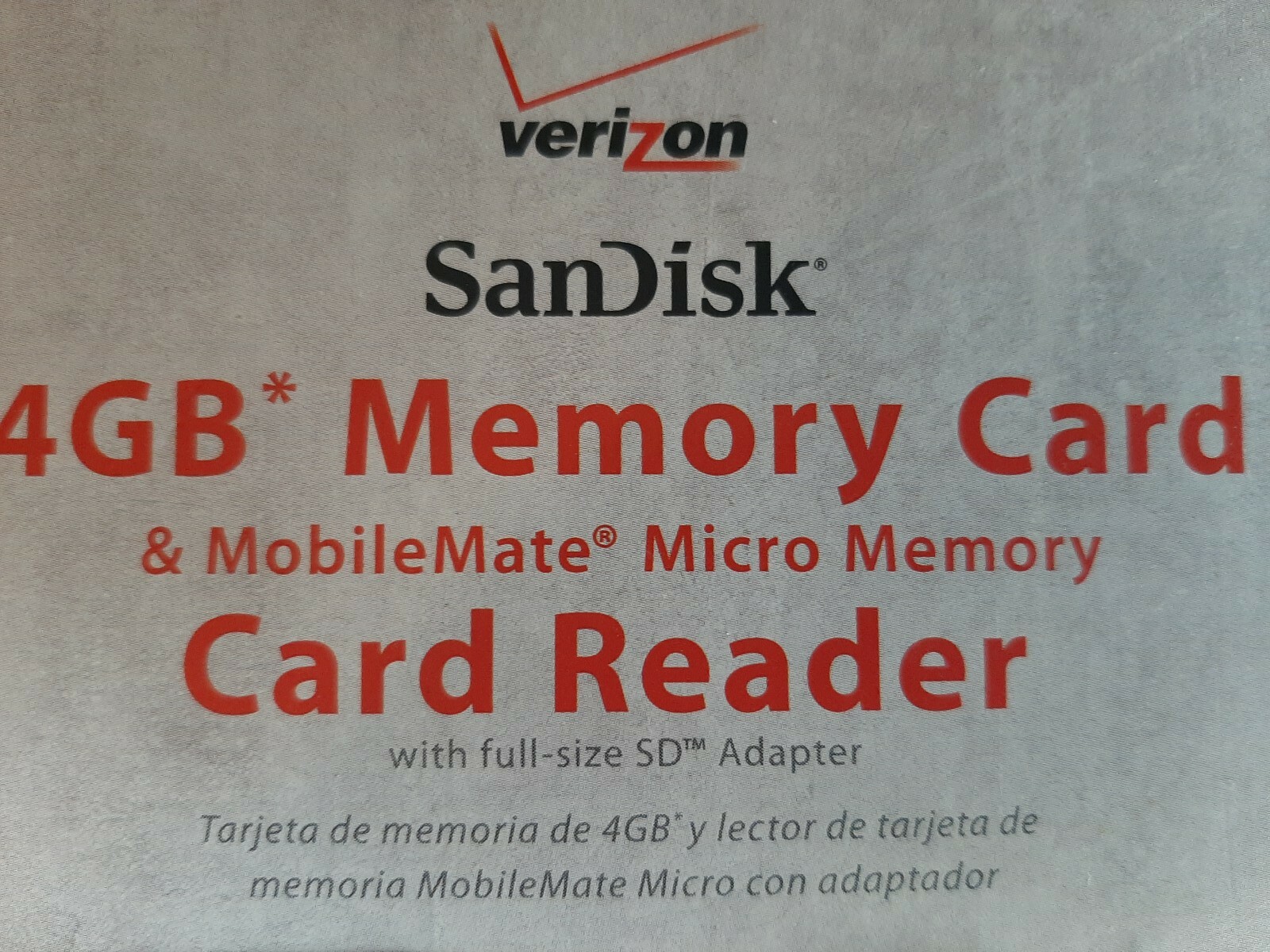 как выглядит Verizon SanDisk 4GB Memory Card Card Reader NEW in pkg Transfer Photos Music фото