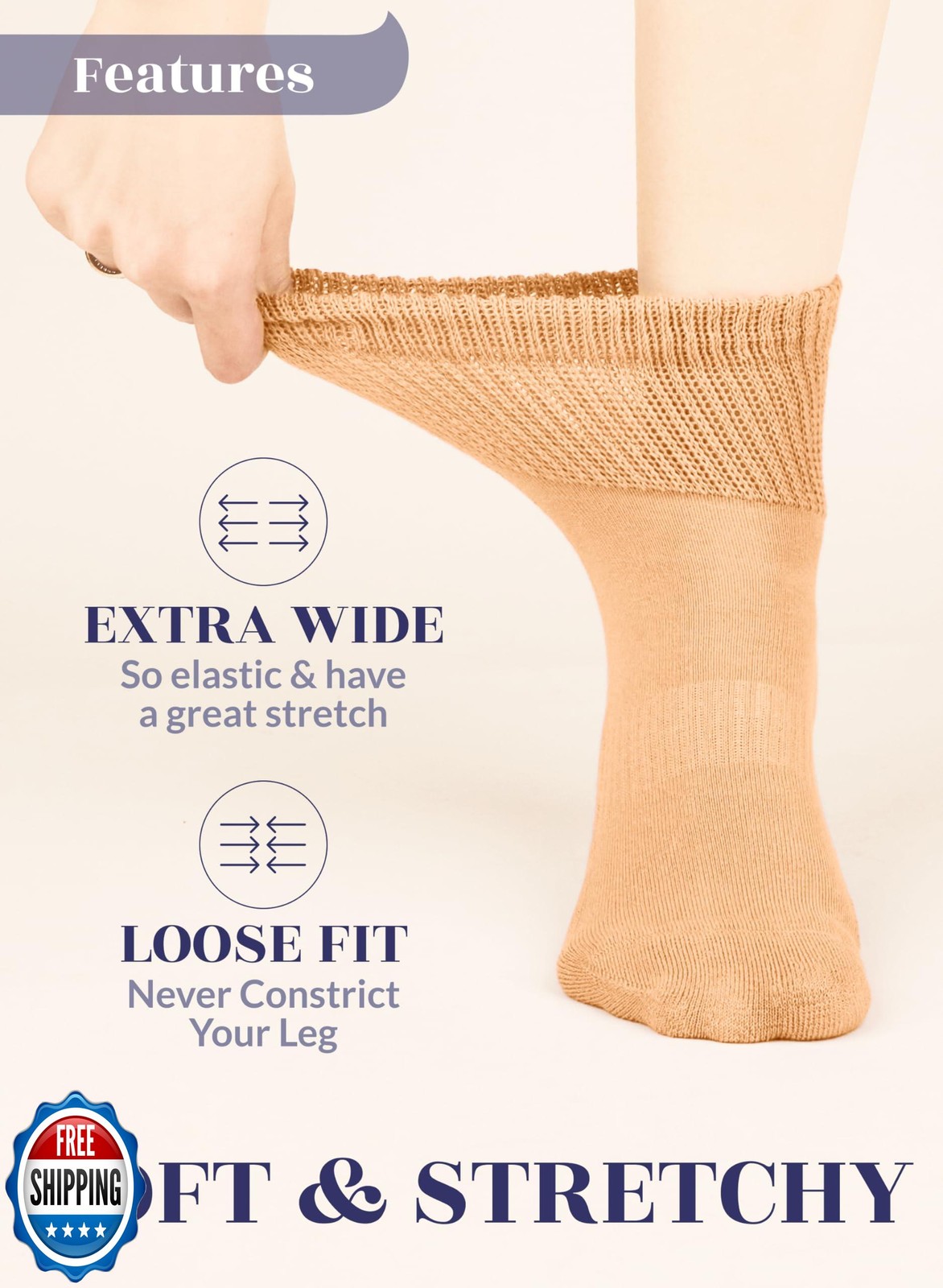 Hugh Ugoli Women's Cotton Diabetic Ankle Socks, Wide, Loose and Stretchy, Sea
