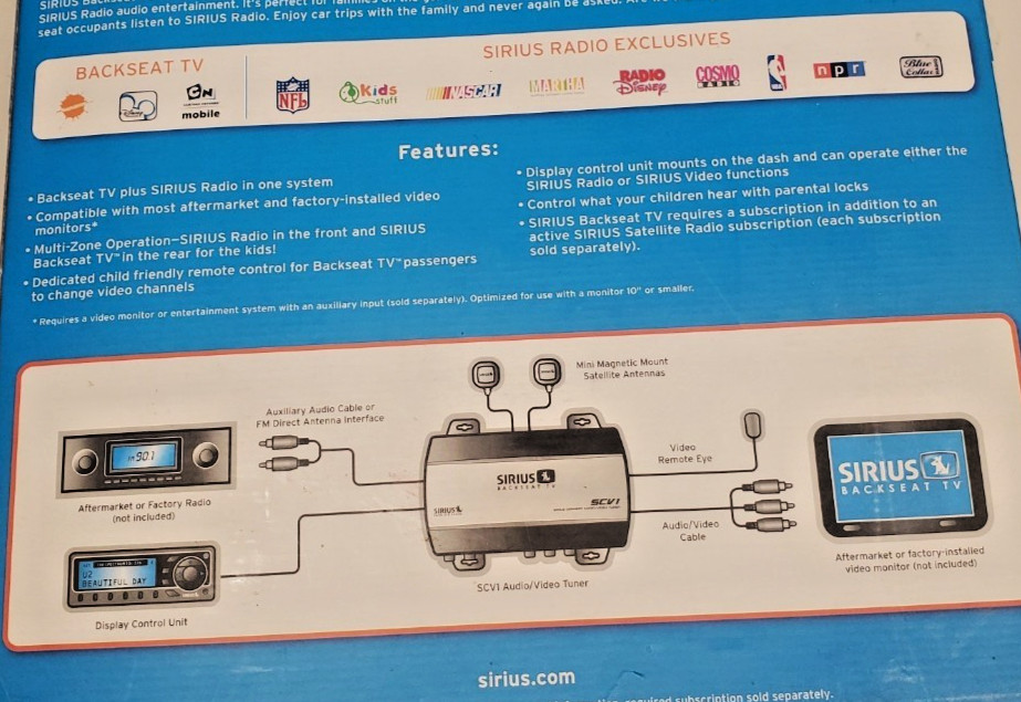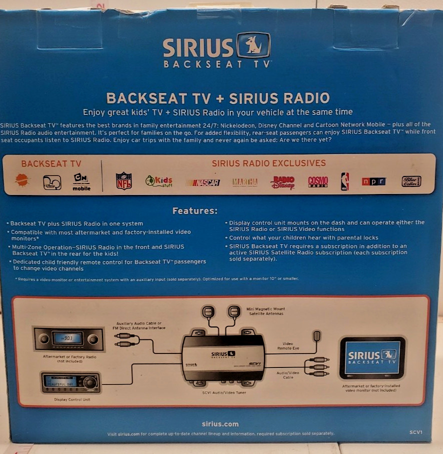 NEW Sirius SCV1 Backseat TV System for Sirius Satellite Radio Receiver