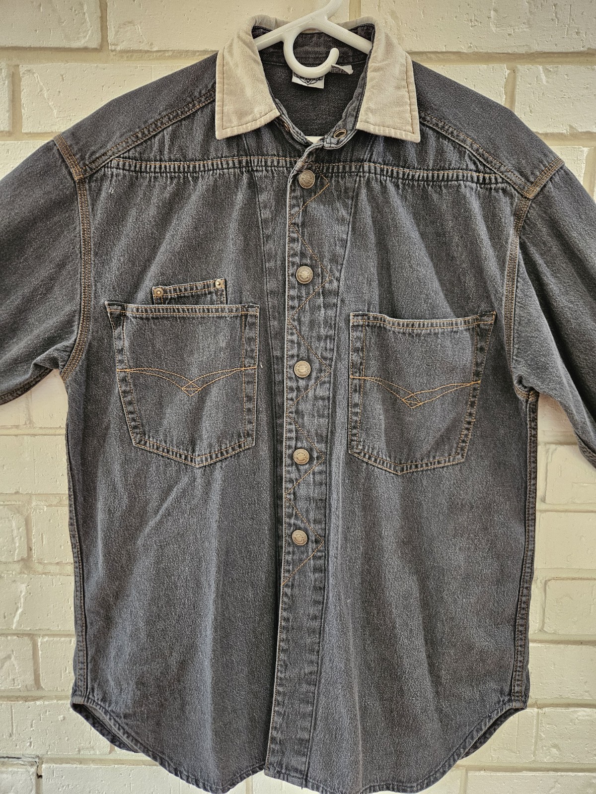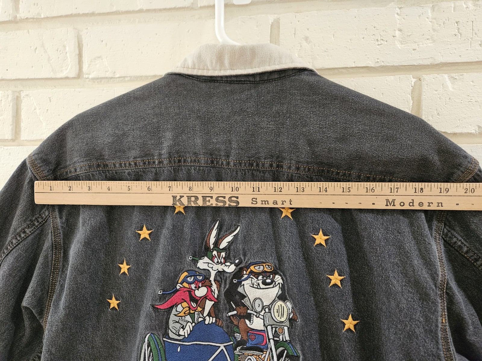 как выглядит 1993 LooneyToons Black Denim Harley Davidson Motorcycle Supreme Small Snap Shirt фото
