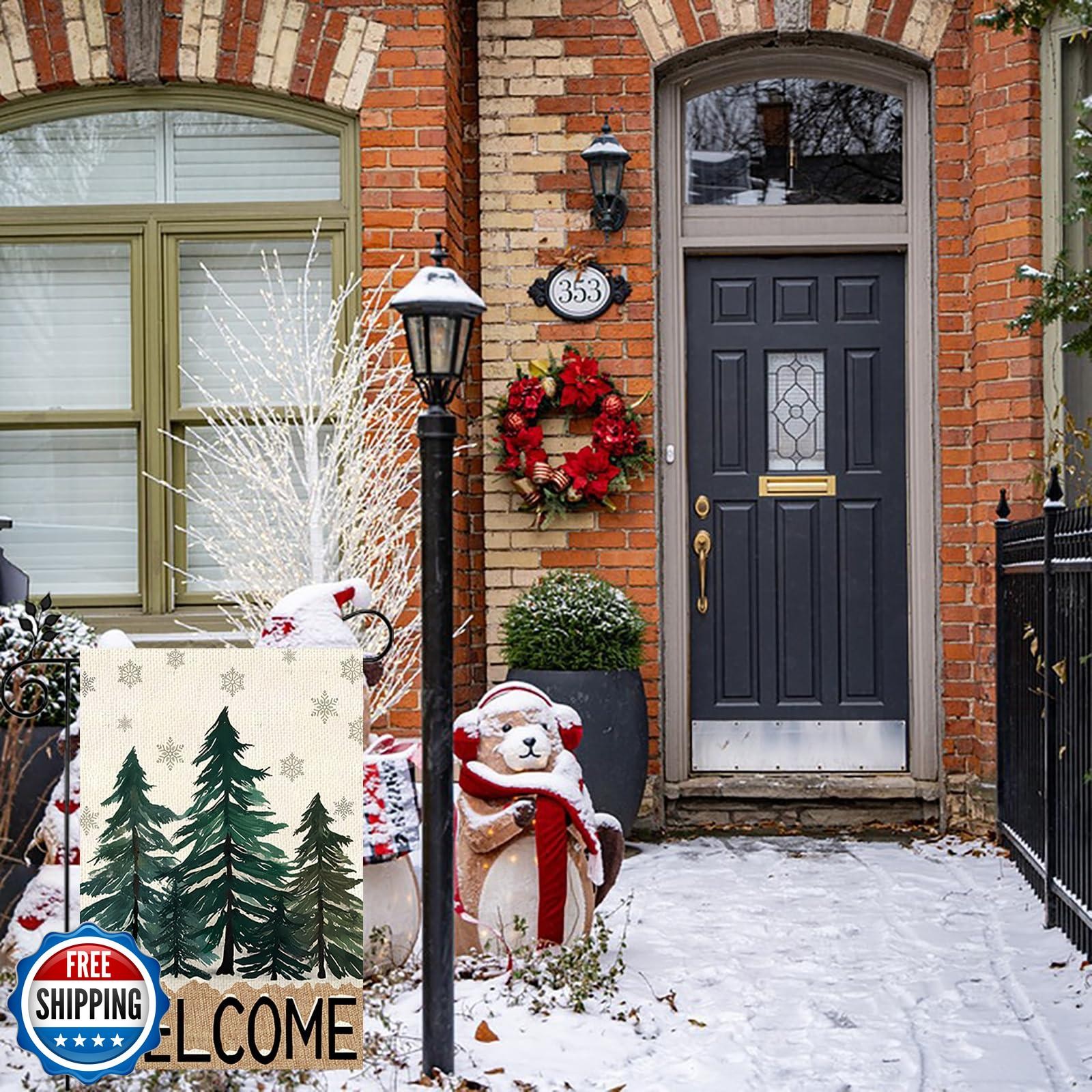 Winter Christmas Garden Flag 12x18 Inch Double Sided Christmas Tree Winter Ho