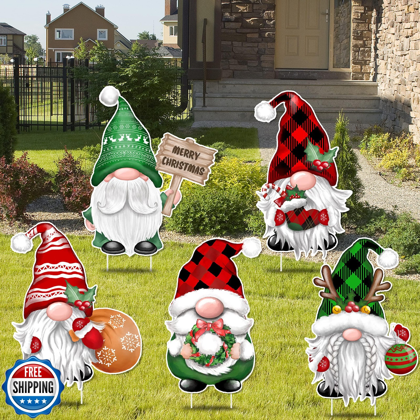 TREWAVE Christmas Gnome Yard Signs 8 PCS, Props Stakes, Outdoor Lawn Decorati