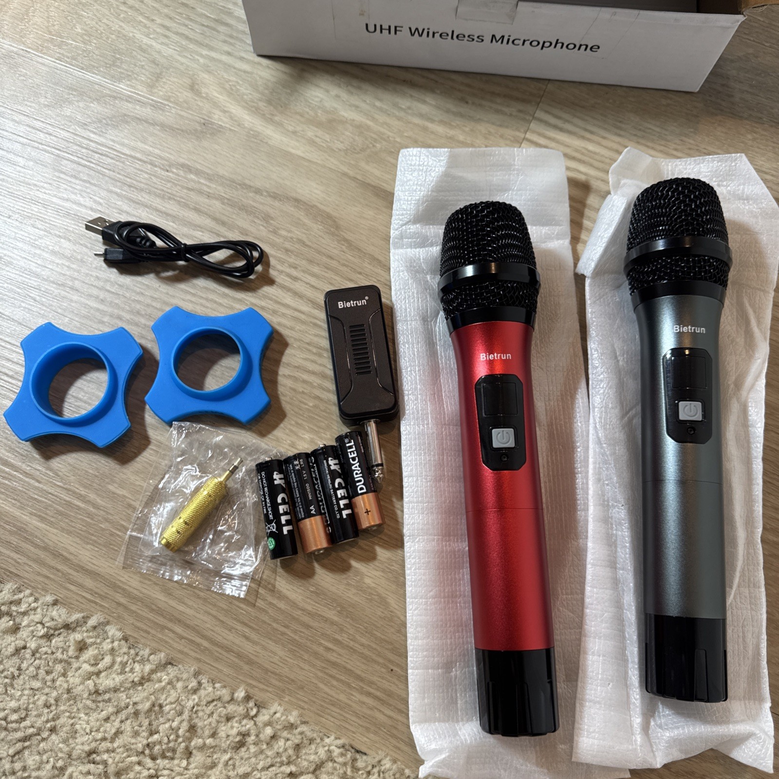 NEW Bietrun WXM02 UHF Dual Wireless Microphone System Dynamic Metal Mic