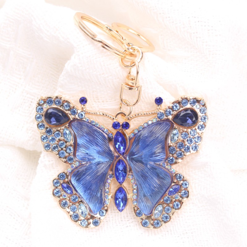 • Blue Rhinestone Butterfly Keychain: Shimmering Decor Accessory, Graceful Gift