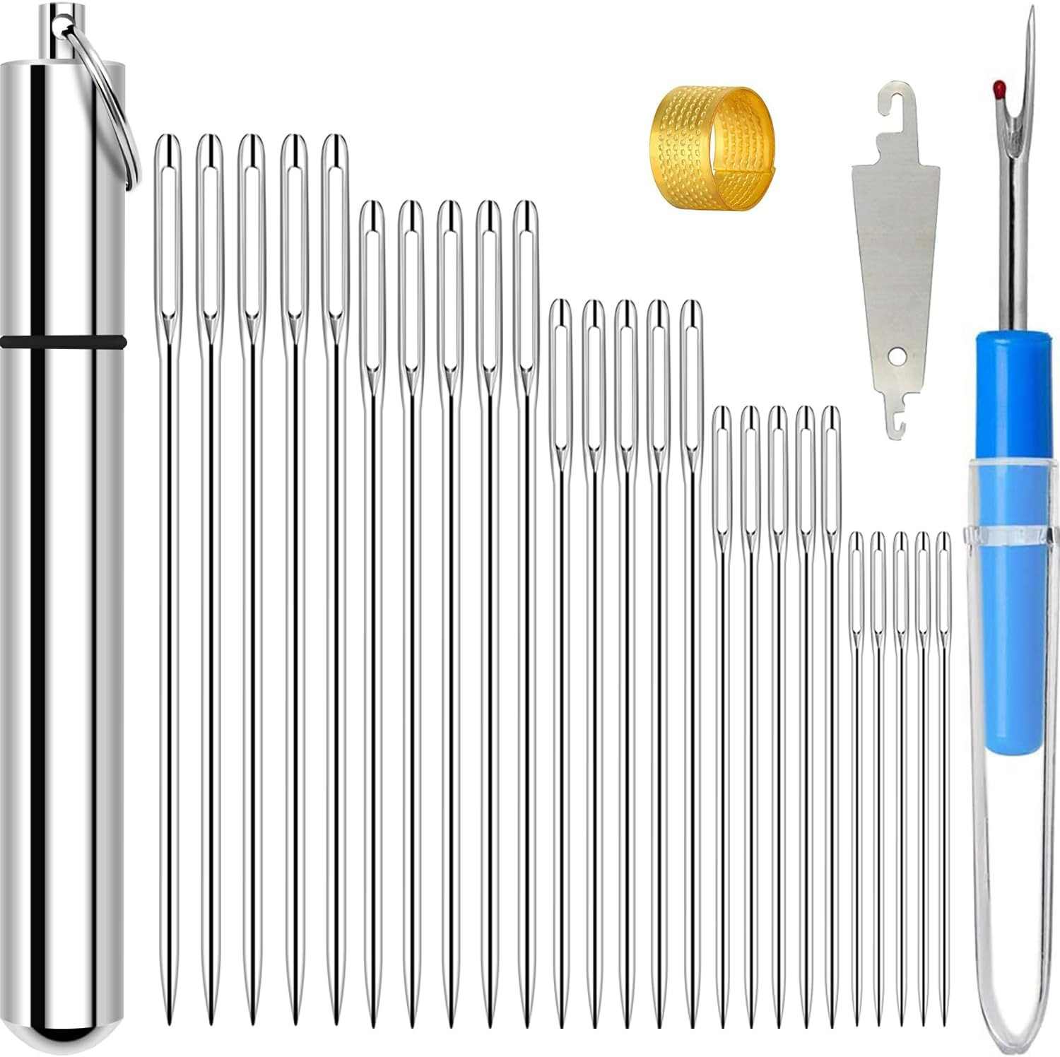 как выглядит 25 Large Eye Embroidery Needles, 5 Sizes Big Eye Hand Sewing Needles with Exq... фото
