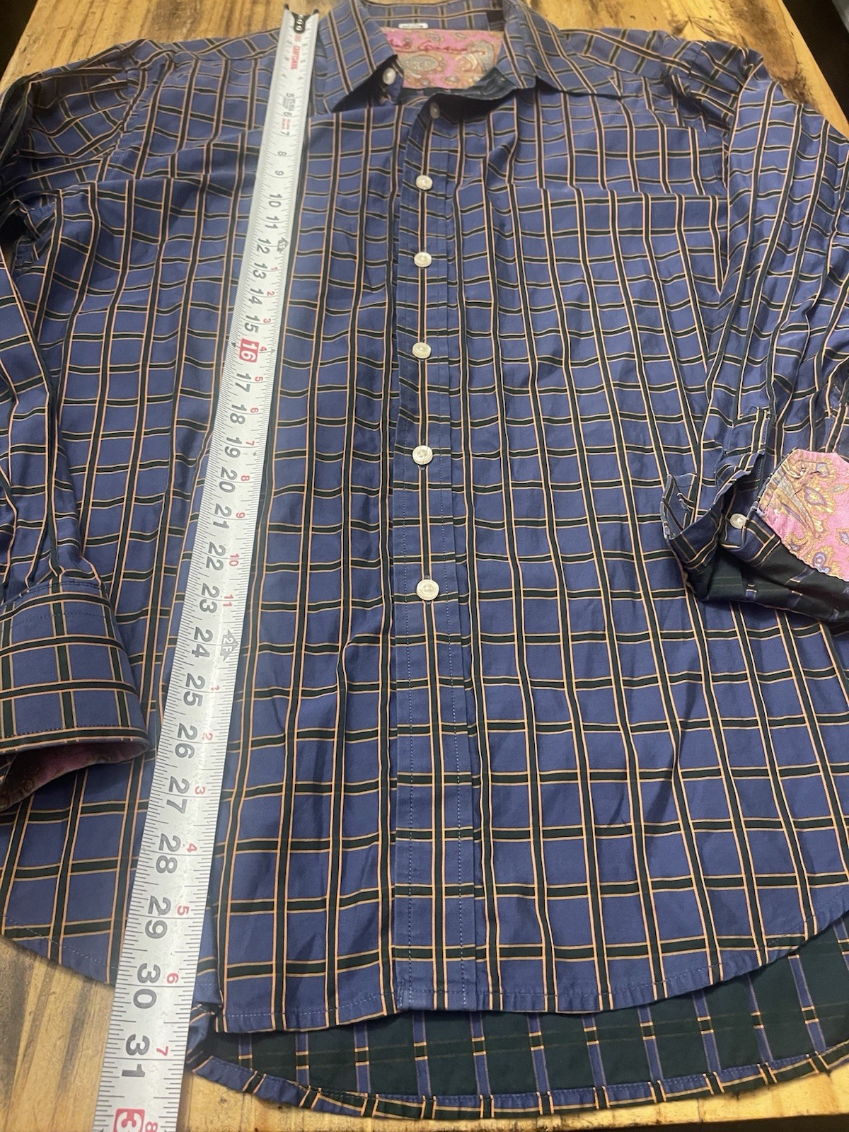 Robert Graham Check Pattern Mens Size XL Button Up Long Sleeve Shirt Navy
