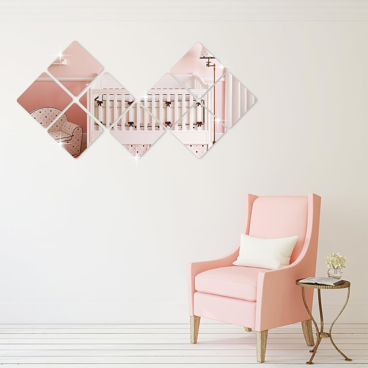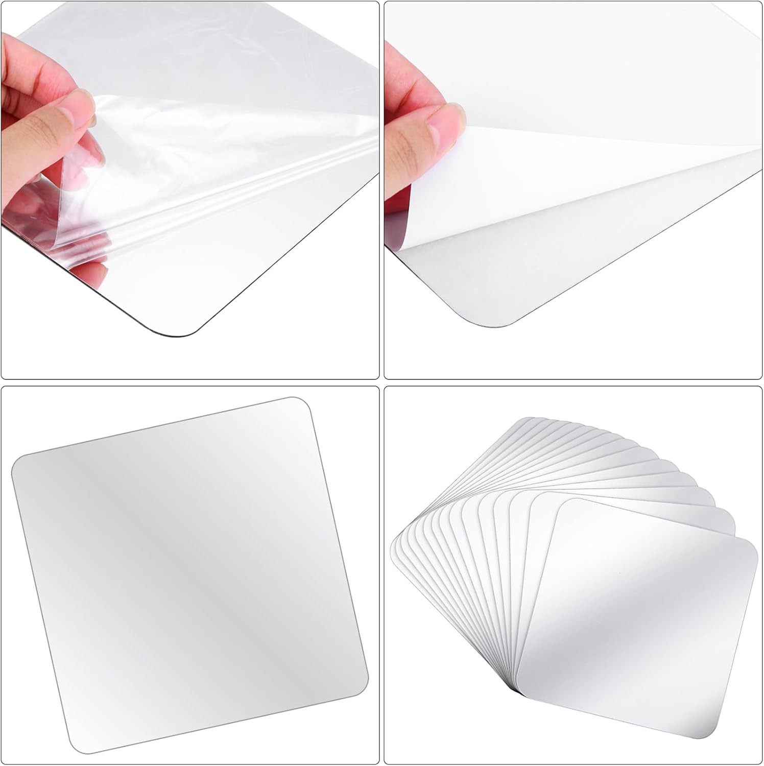 15 Pieces Flexible Mirror Sheets Decals Self Adhesive Non-Glass Mirror Tiles Sti