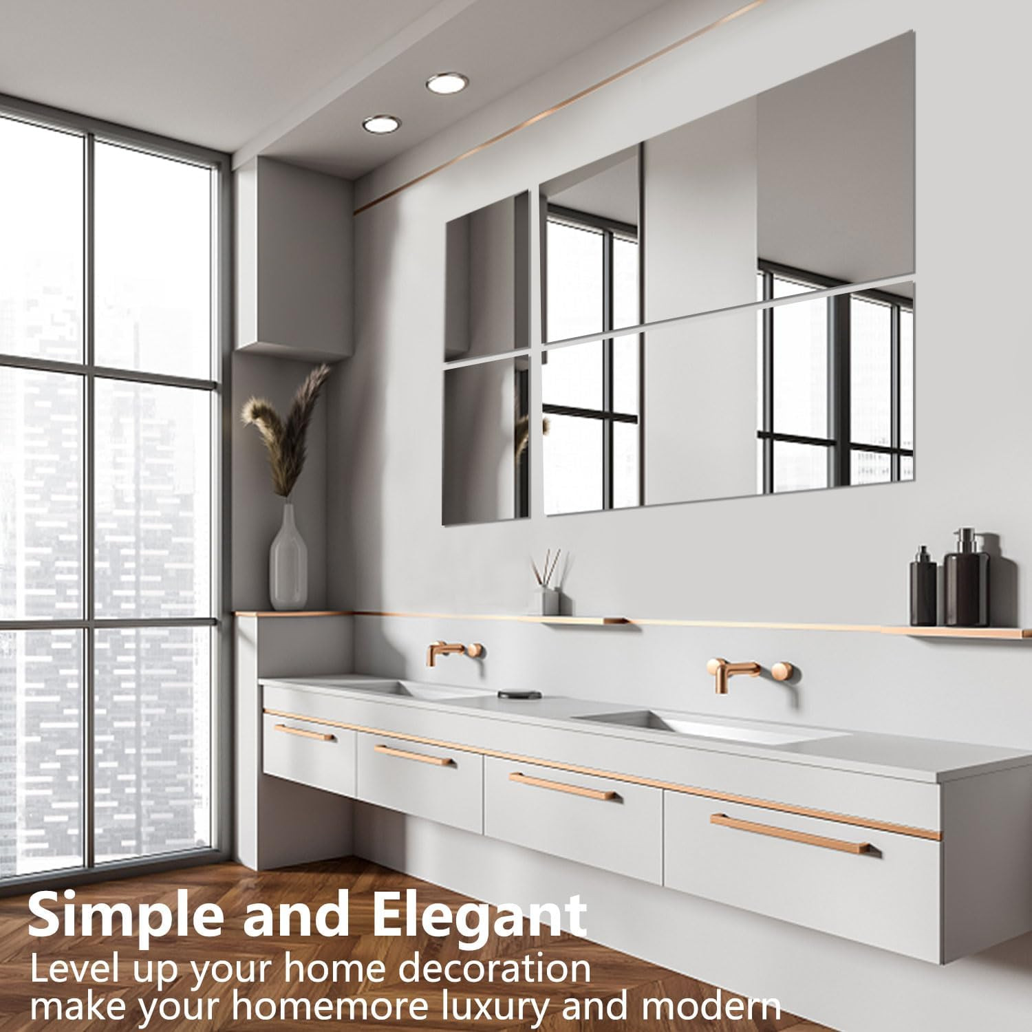 как выглядит 2Pcs 16 X 12 Glass Wall Mirror Tile Self Adhesive Frameless High Clear Mirror фото