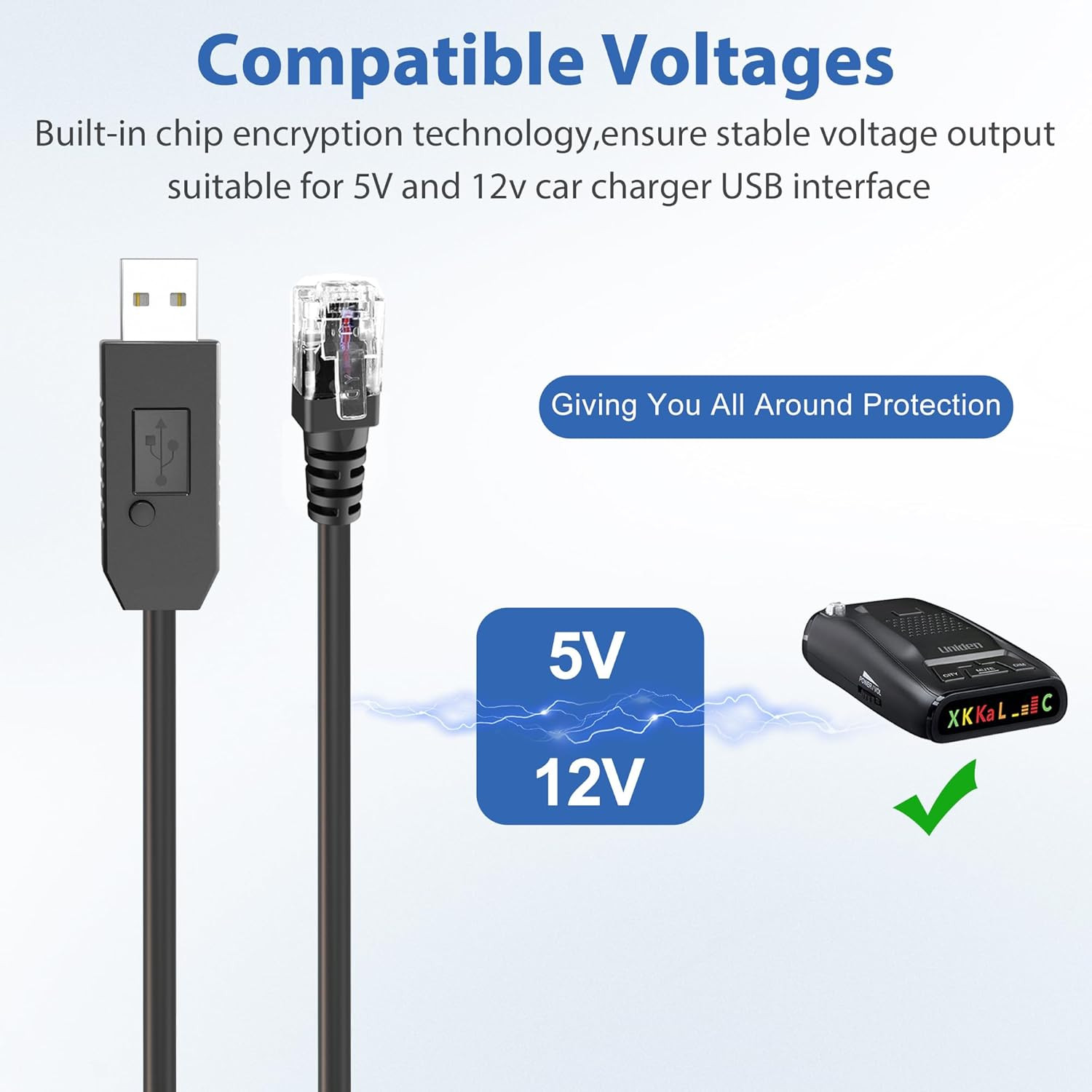 как выглядит Radar Detector Cable, USB to RJ11 Plug Power Cord with Mute Function,Replacement фото