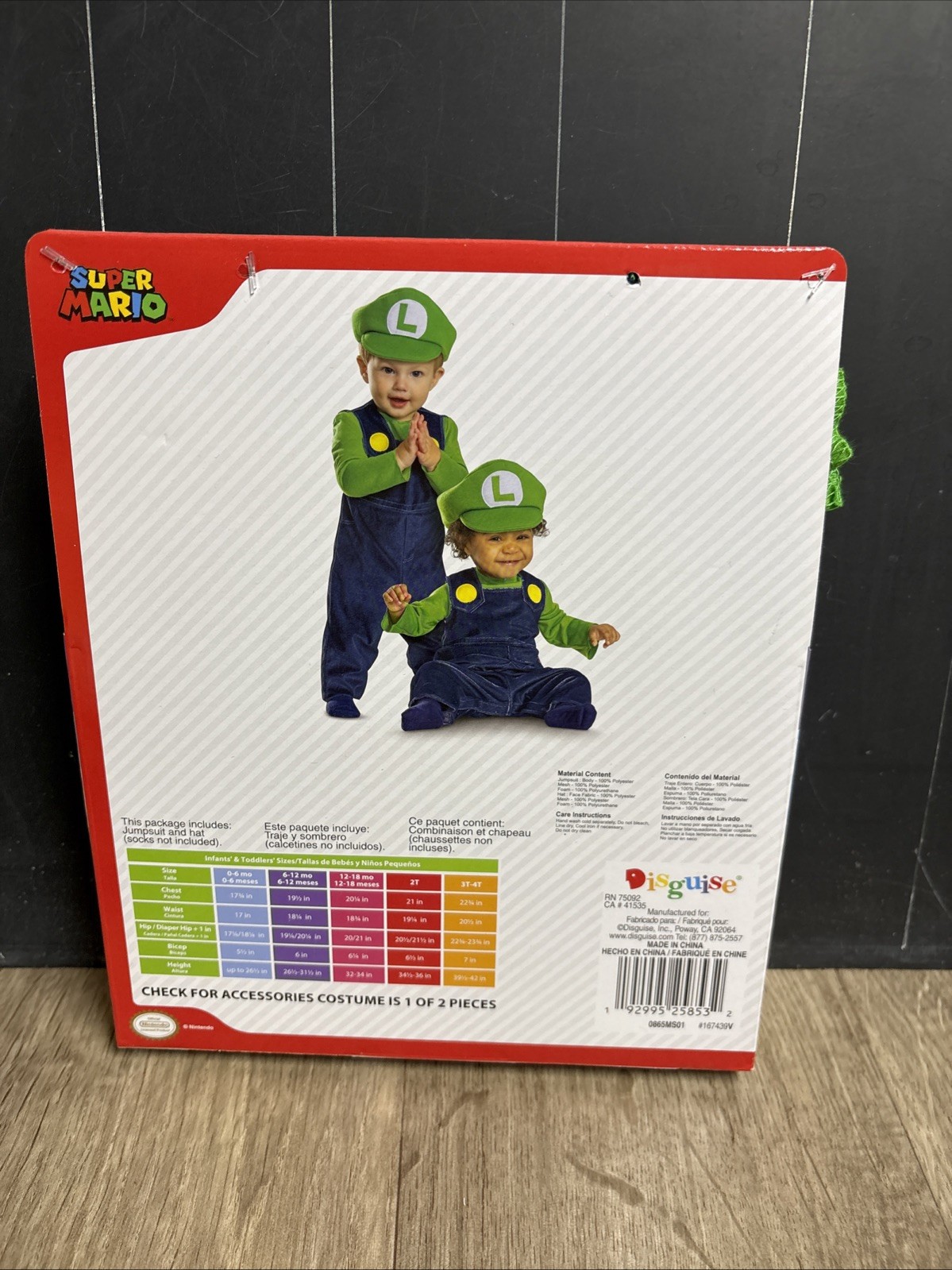 Baby Super Mario Bros. Luigi Jumpsuit Costume Hat 6-12 Months Disguise A3