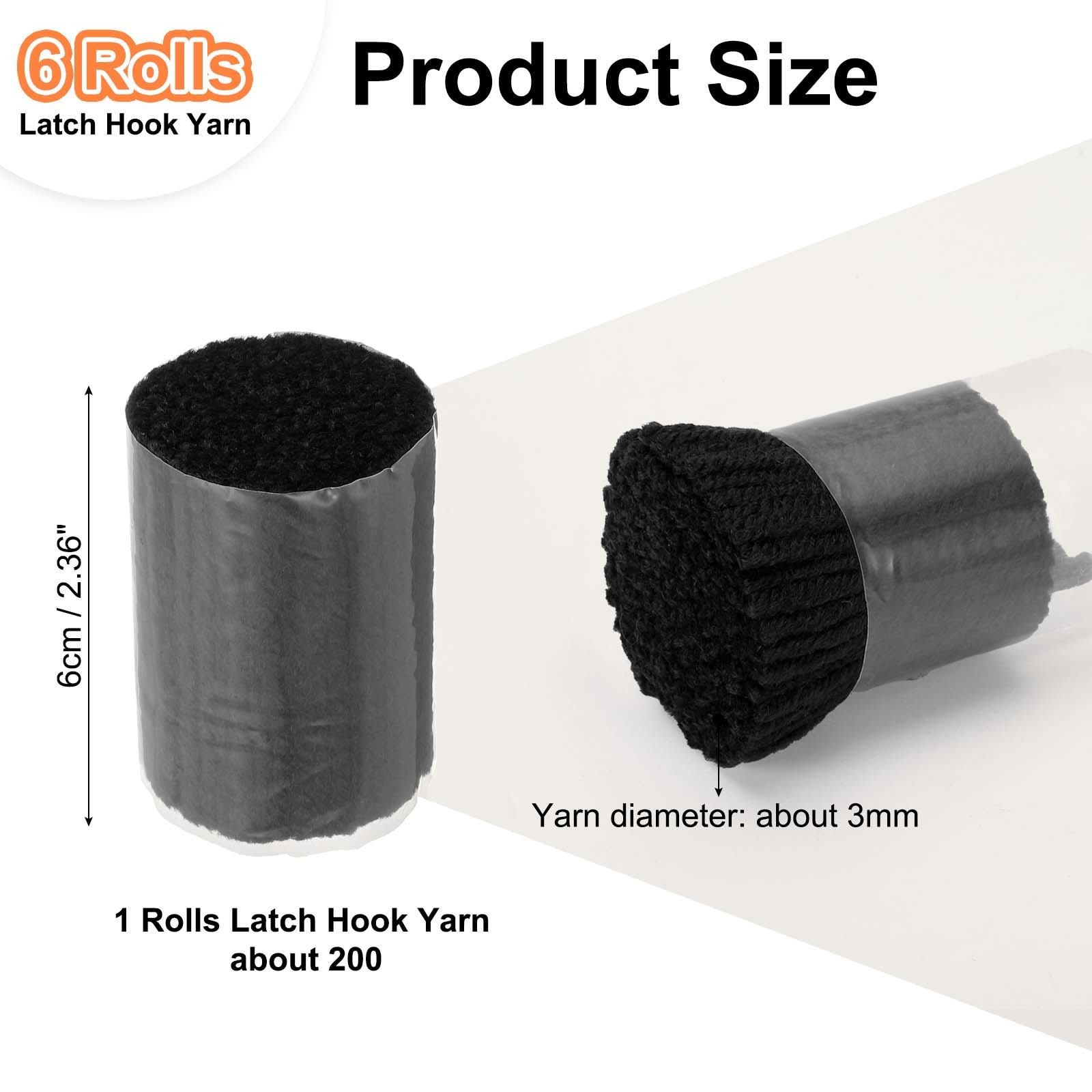 6 Rolls Latch Hook Yarn, Latch Hook Kit Yarn Hook Rugs Crochet, Black