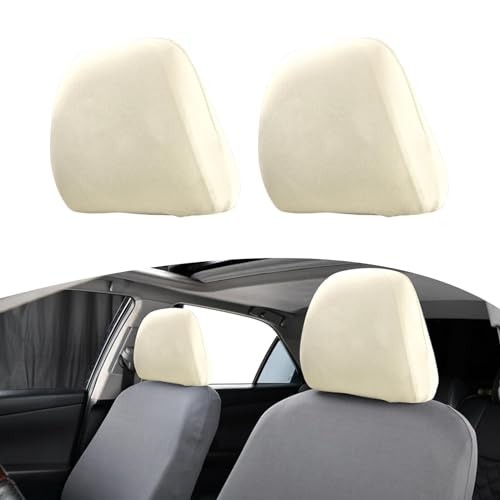 Pack-2 Car Seat Headrest Covers, Seat Headrest Cover 2 PCS Beige Thick Model