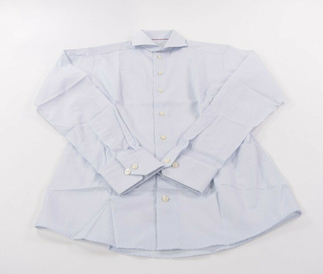 Eton Dress Shirt Size 15 38 Slim Fit Light Blue White Geometric NWOT