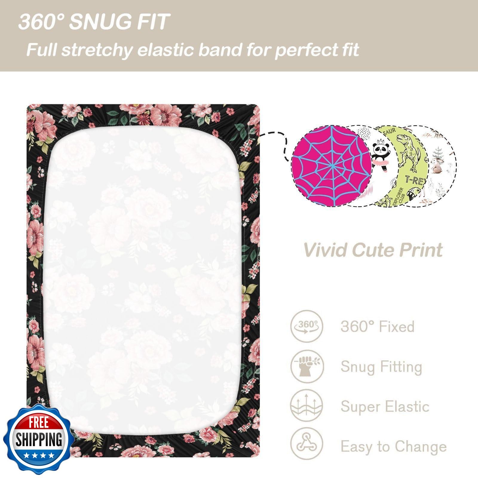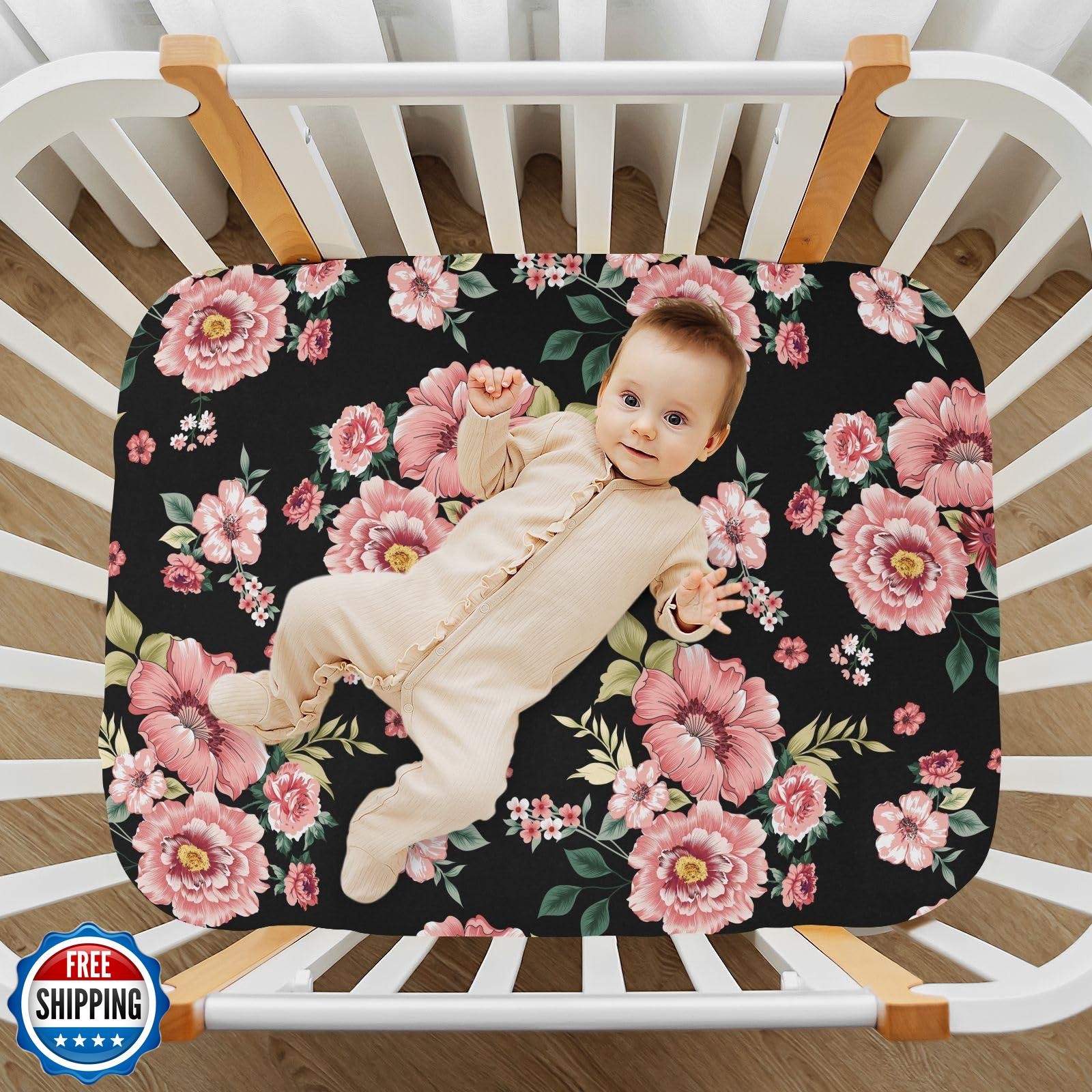 CaTaKu Black Florals Peony Crib Sheets for Girls Boys Baby Fitted Sheets for