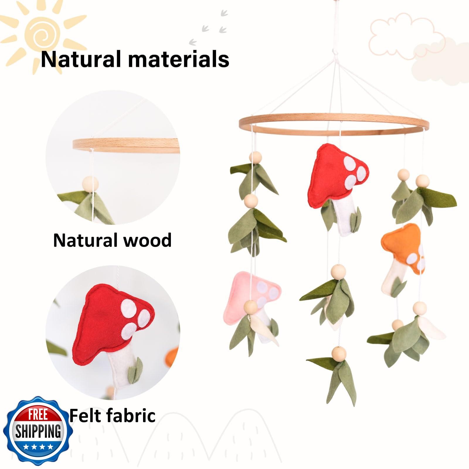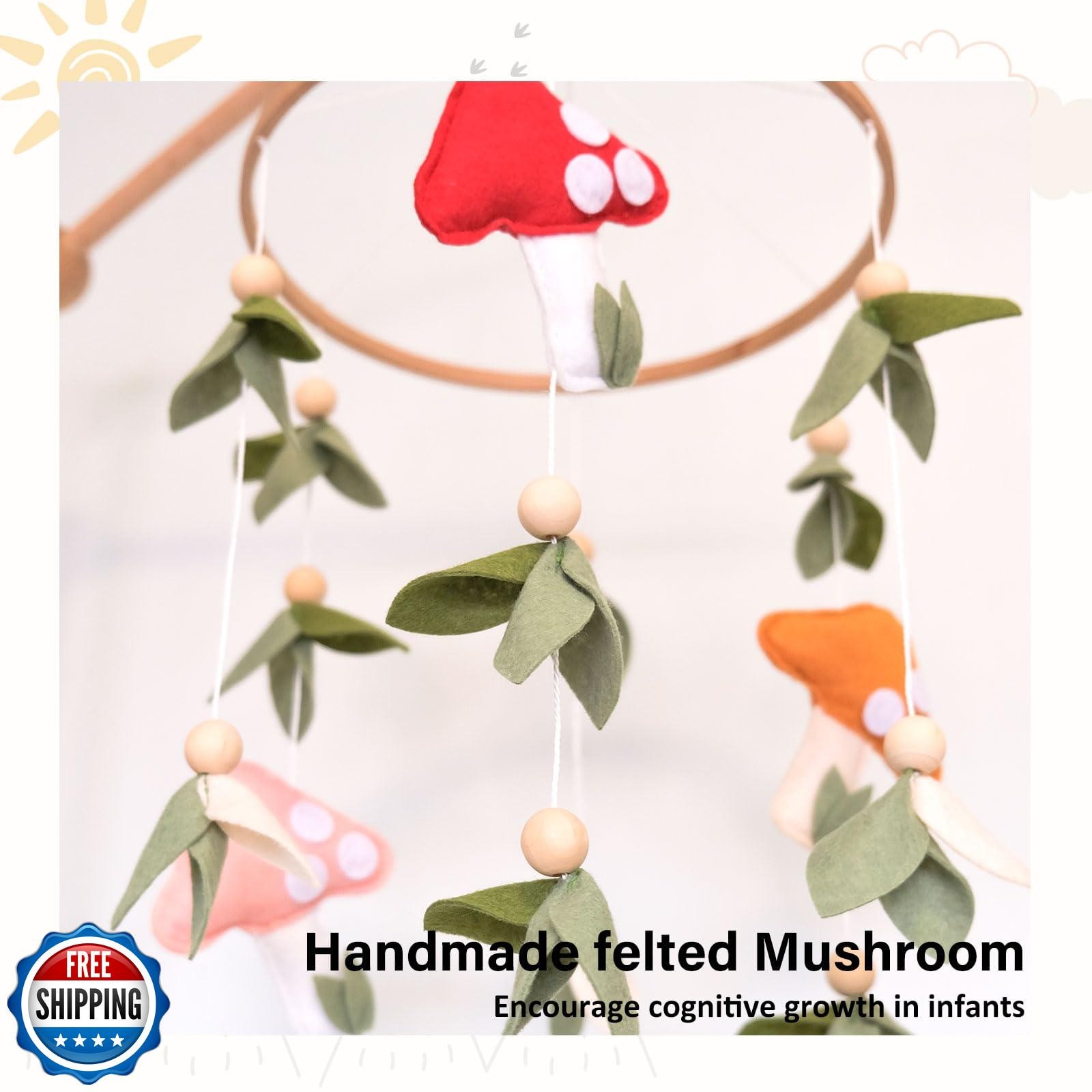 Mushroom Baby Mobile, Green Leaf Mobile for Crib, Crib Mobile for Boys Girls,