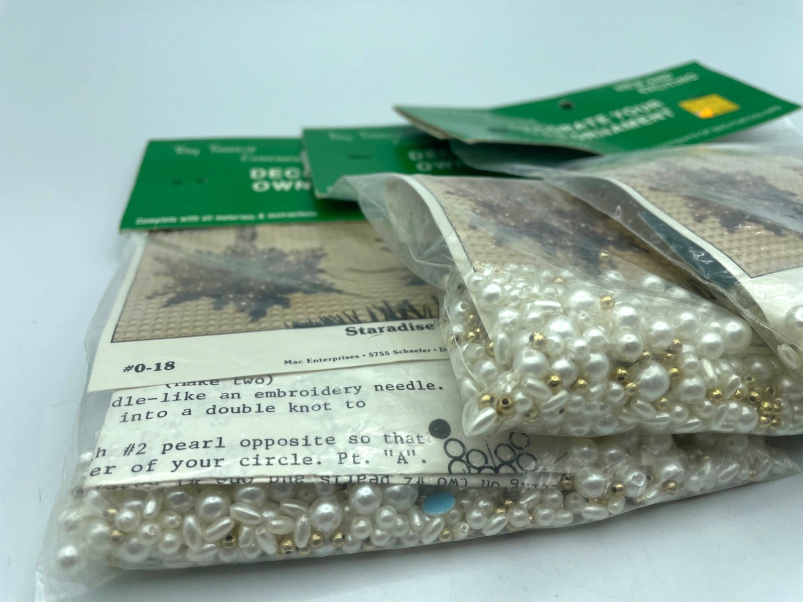 Vtg Merri Mac lot 3 ornament Kits Pearls beads Staradise Makes 6 star shaped NEW