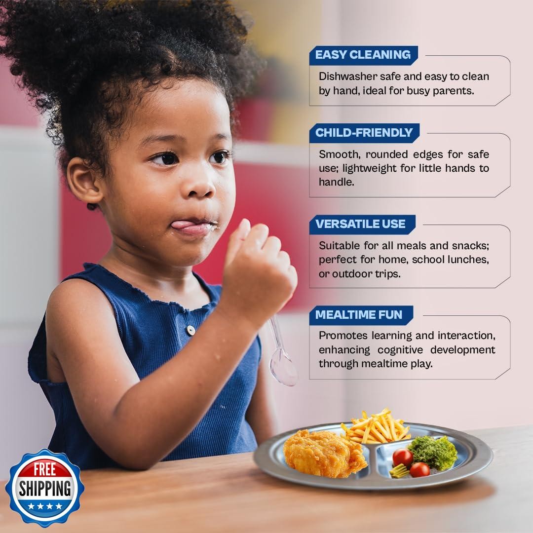 Stainless Steel Plates for Kids, Toddler Plate, Non Toxic Baby Dinnerware, BP