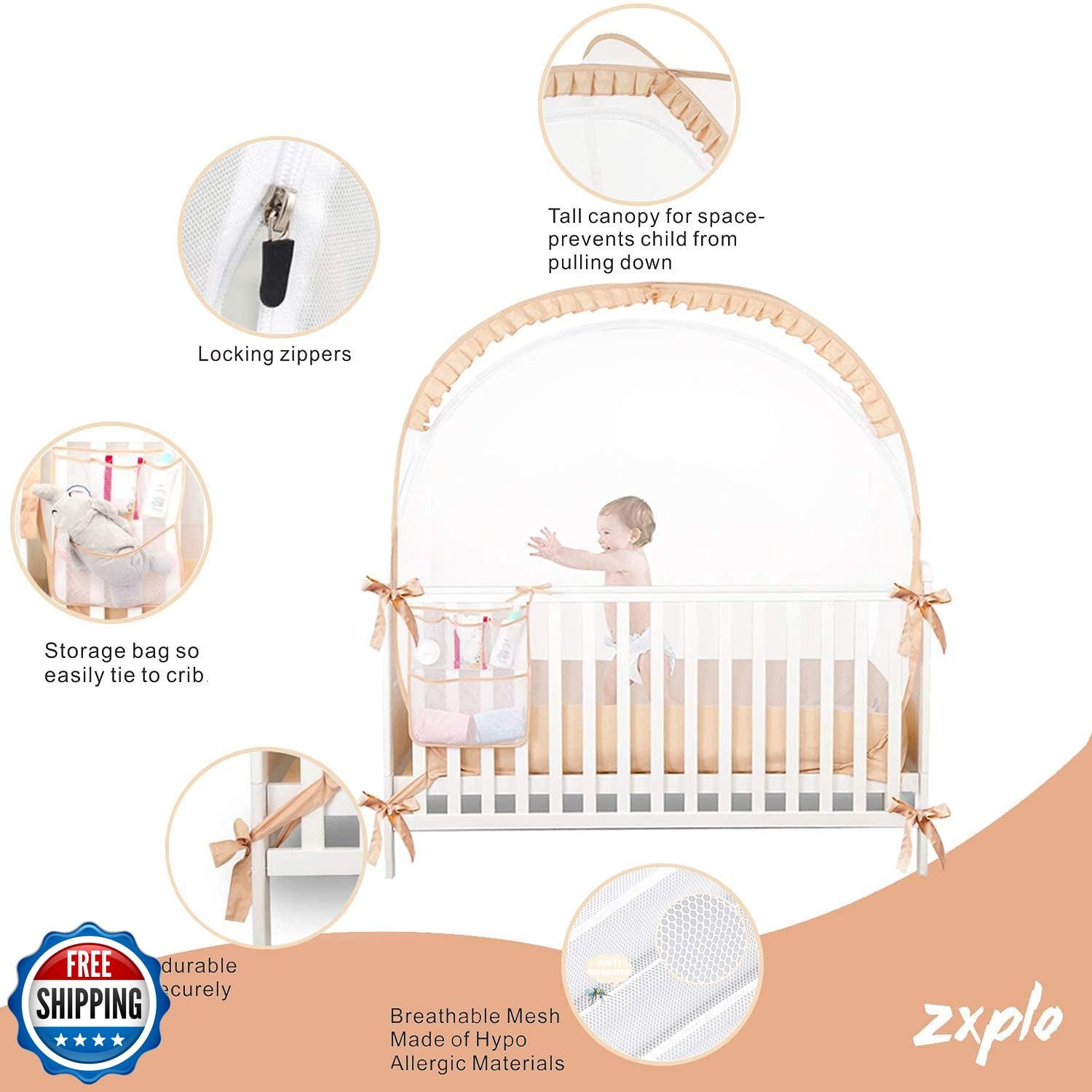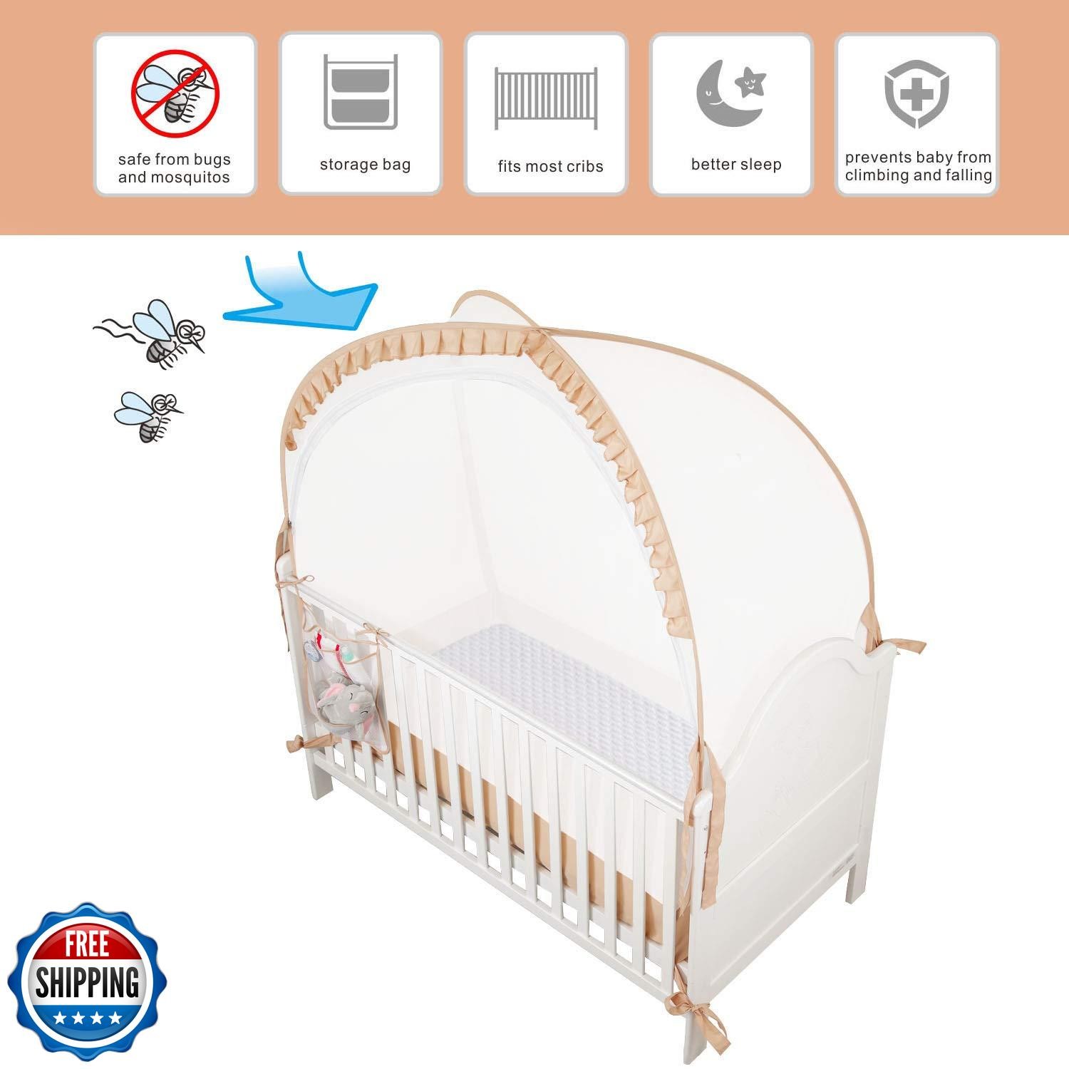 ZXPLO Baby Safety Crib Tent Infant Pop up Mosquito Net Nursery Bed Canopy Net