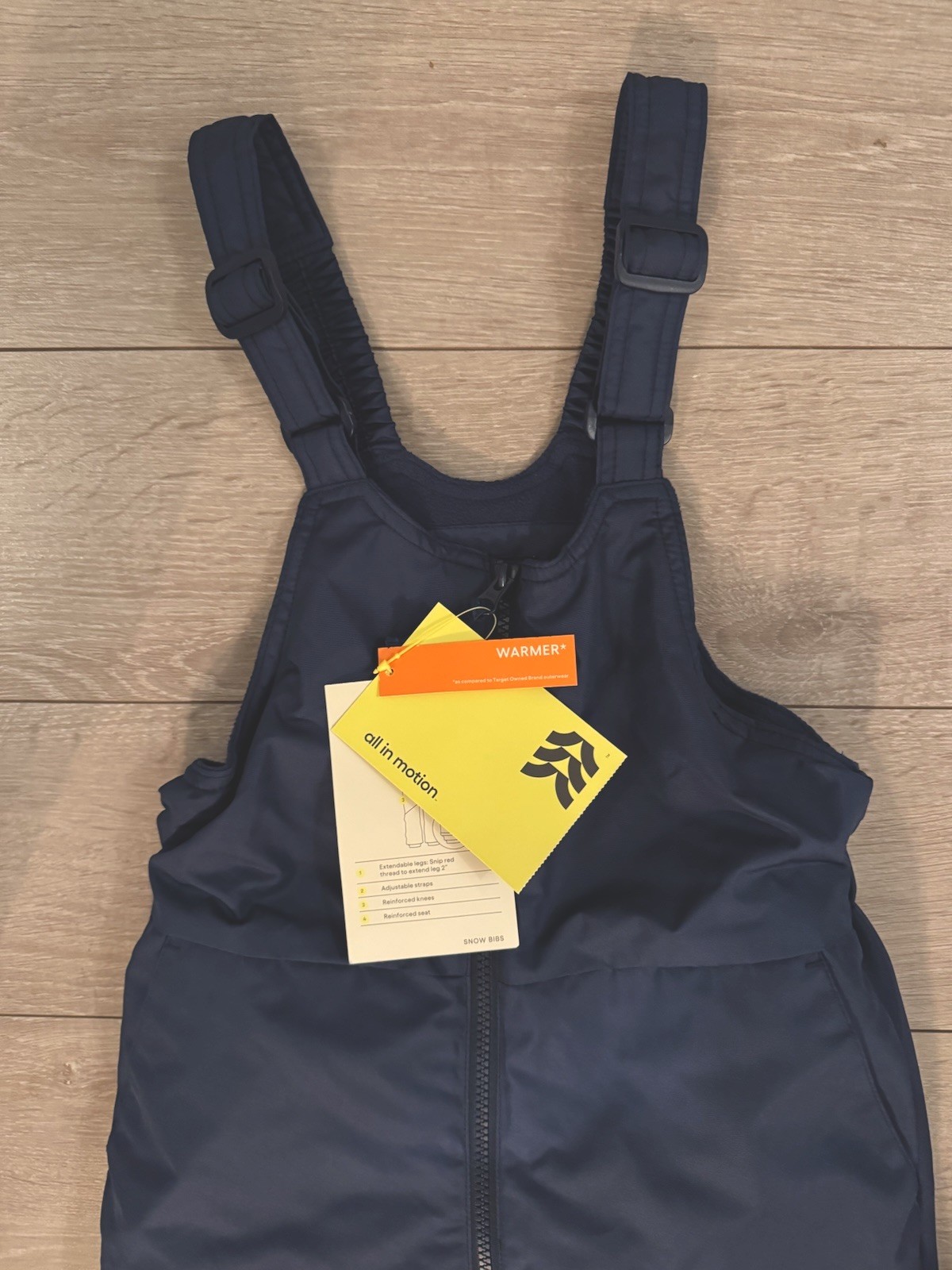 NWT All In Motion Snow Bibs Kids Medium Water Wind Resistant 8/10 Navy Blue