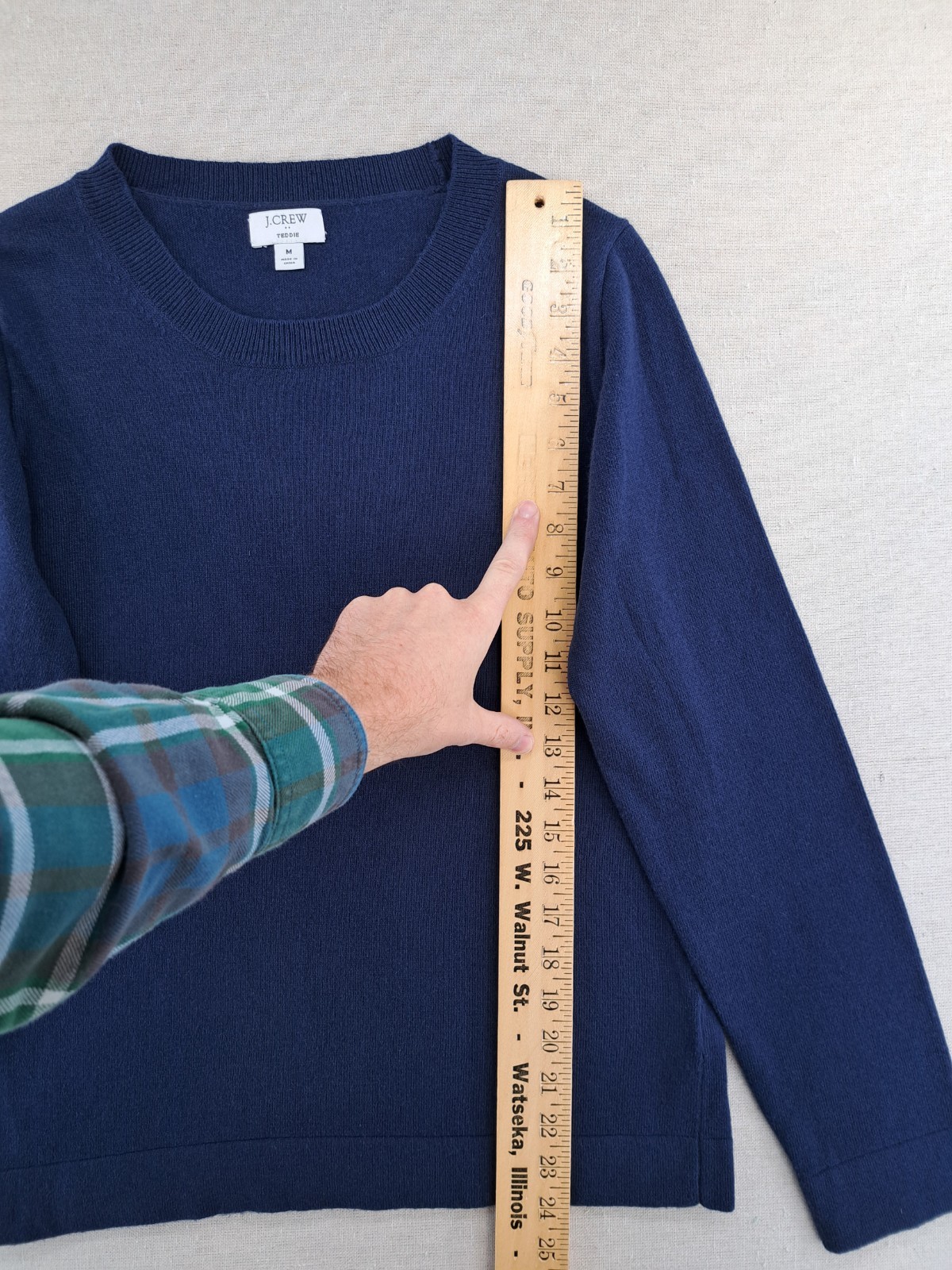 как выглядит J Crew Teddie Sweater Womens Medium Blue Wool Blend Lightweight Crewneck фото