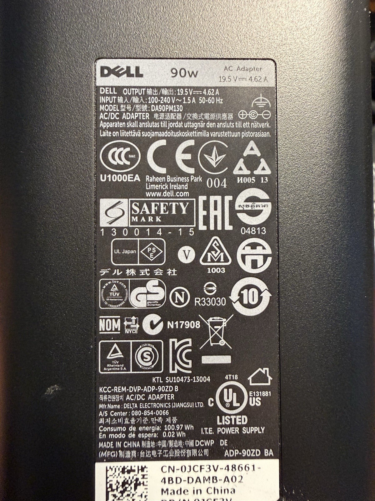 Lot of 5x OEM DELL GENUINE LATITUDE INSPIRON 90W AC ADAPTER With Power Cables