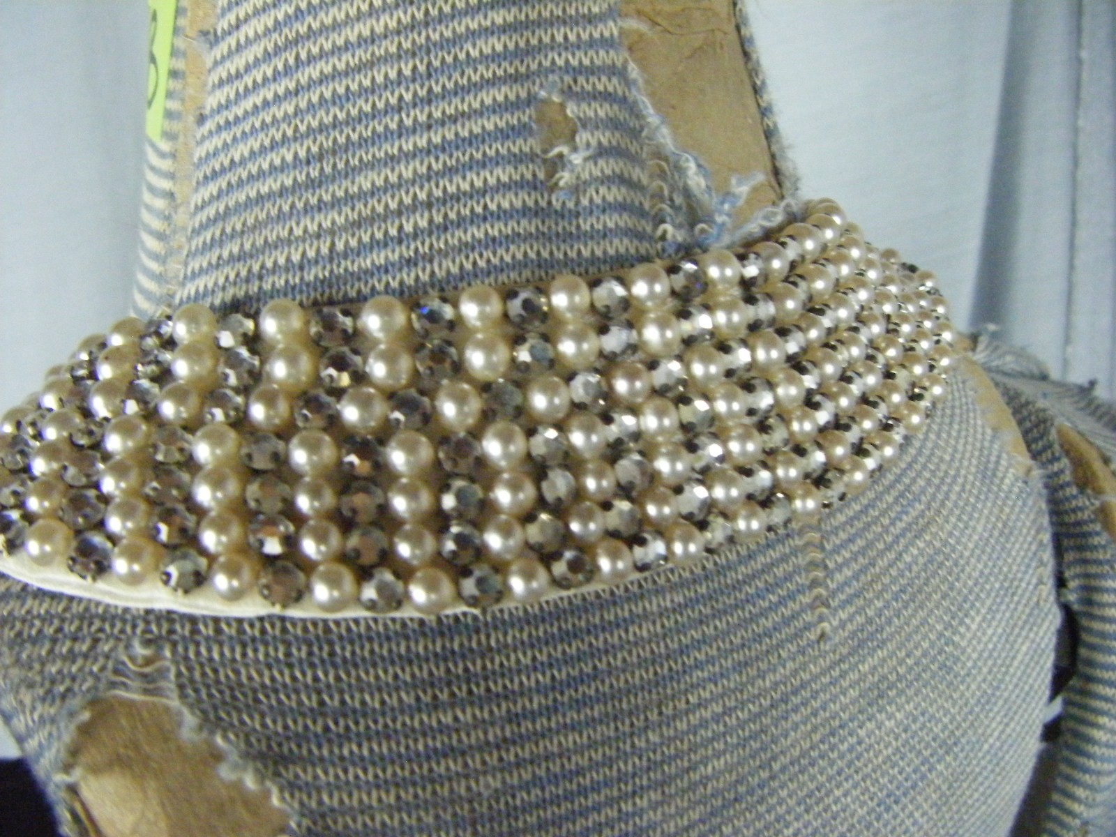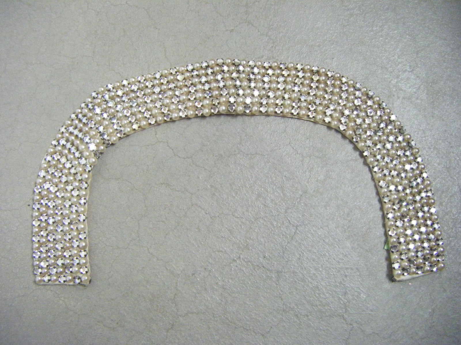 как выглядит BAAR E. BEARDS Vtg 60s Made in Japan Heavy Pearl Rhinestones Collar- 15" long фото