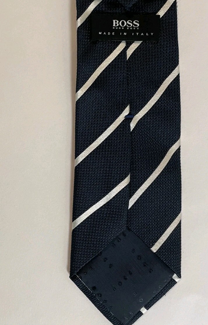 Hugo Boss Dark Blue Diagonal Stripe Textured 58 Tie - Made in Italy
