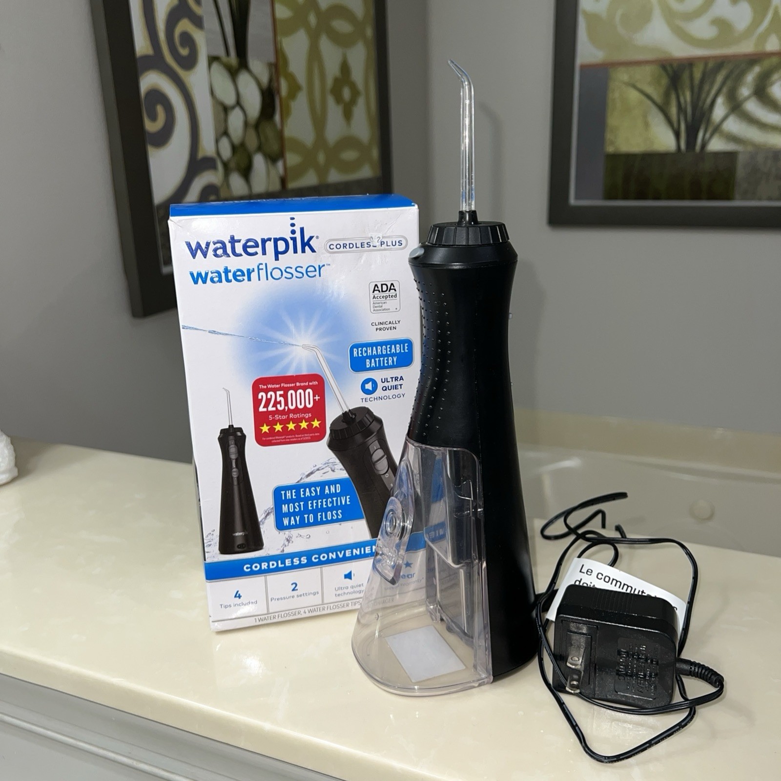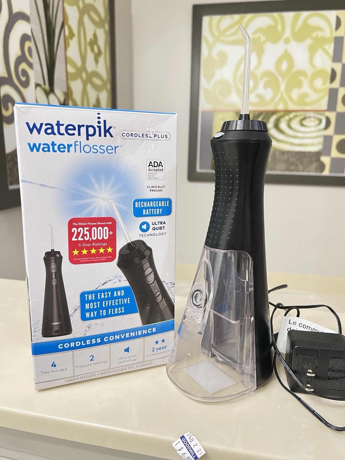 как выглядит Waterpik Cordless Plus Black Water Flosser Plus Model WP-400 W/4 Tips Open Box фото
