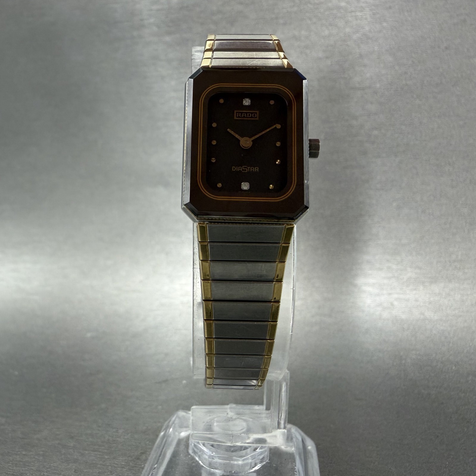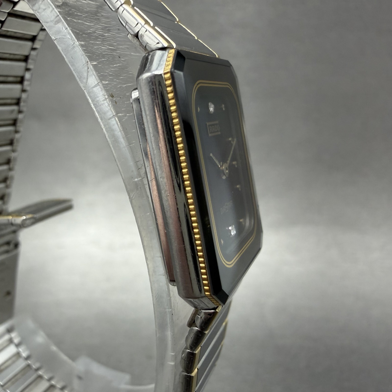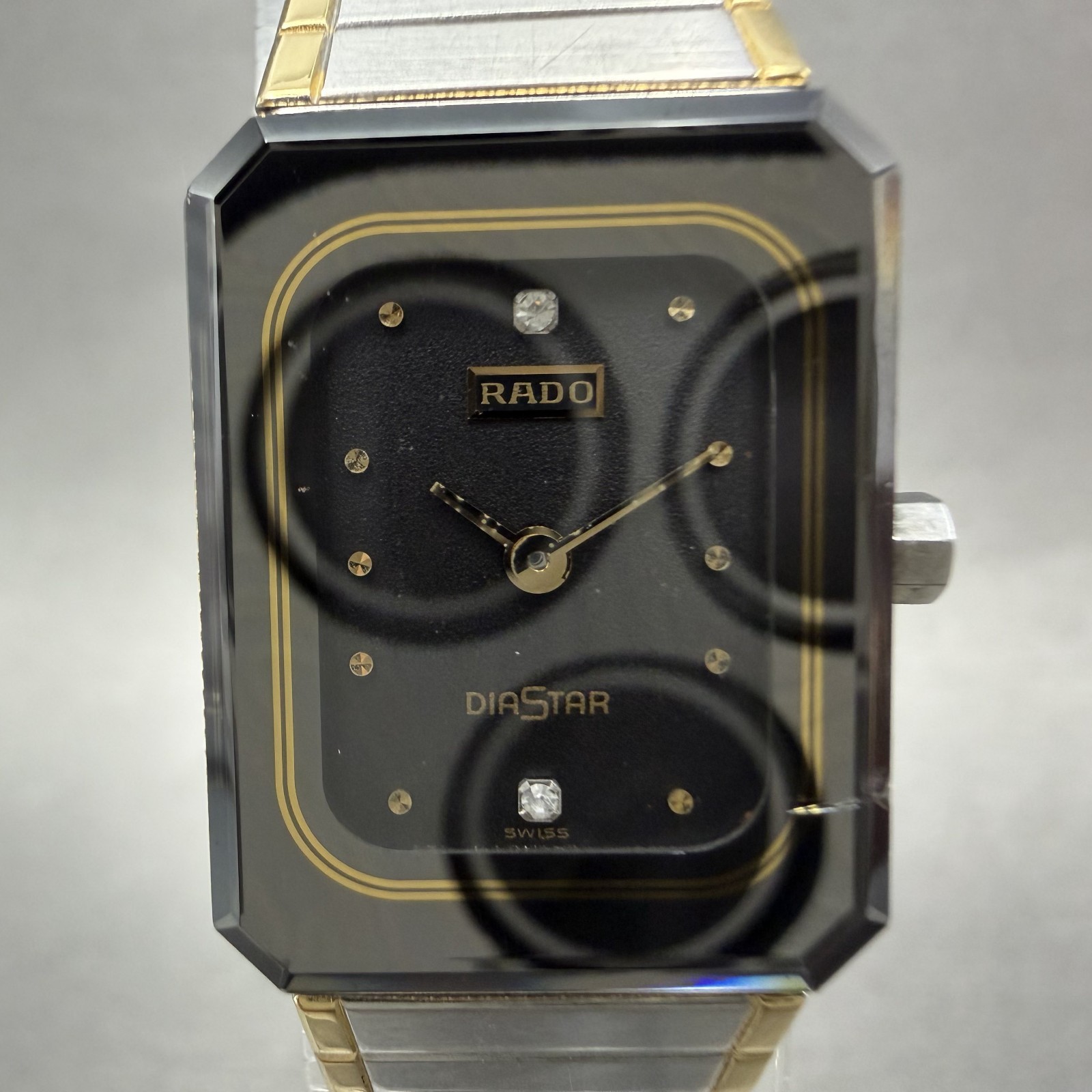как выглядит Rado Diastar Watch Women 18mm Black Dial Two Tone Rectangle 153.1016.3 New Batt фото