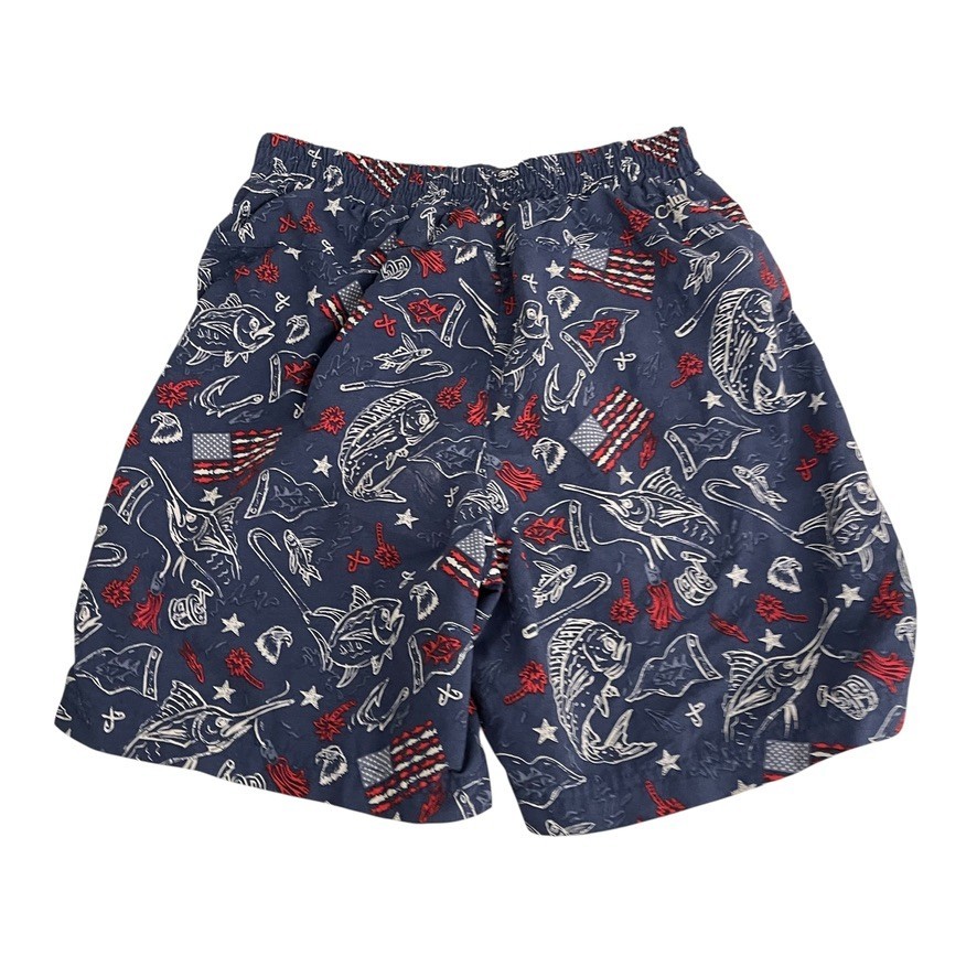 Columbia Swim Shorts Boy's Medium Colorful Blue Fish USA Lined Printed Artsy