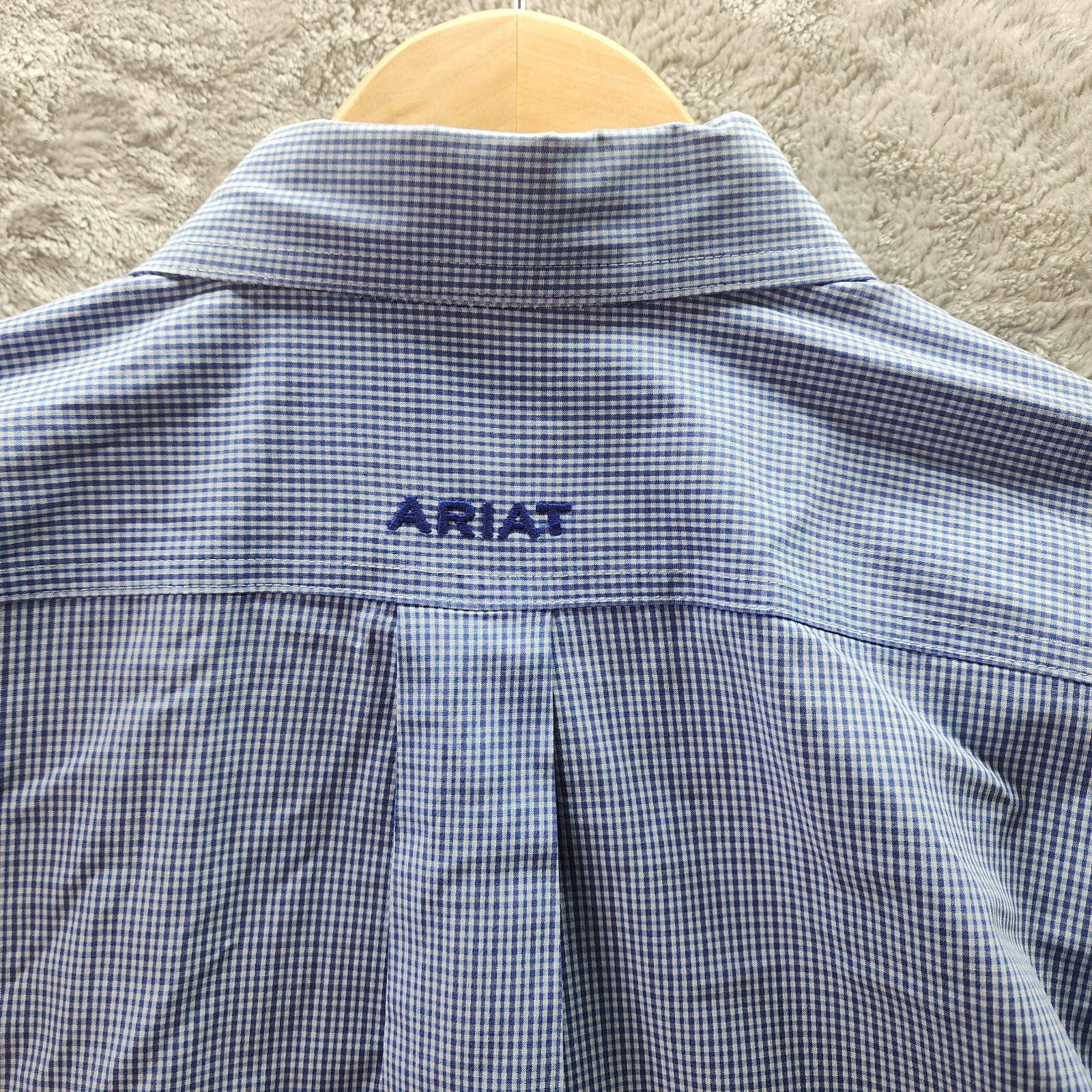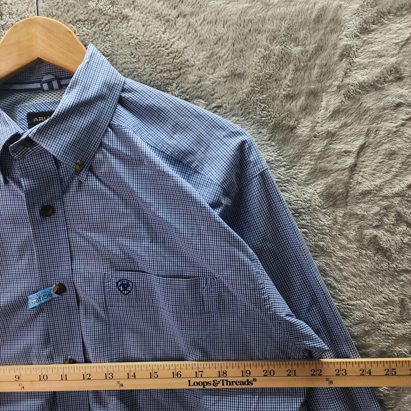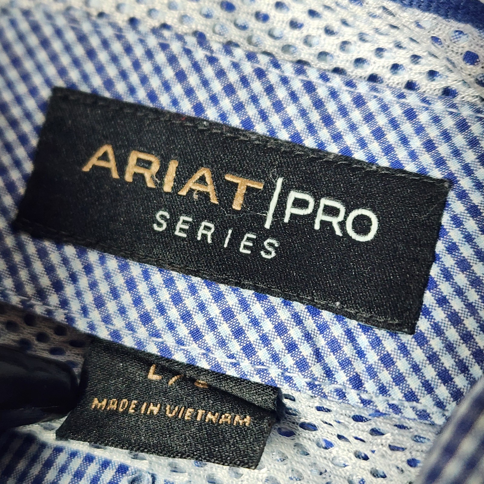 Ariat Pro Series Mens L Blue Micro Check Button Down Western Shirt Moisture Wick
