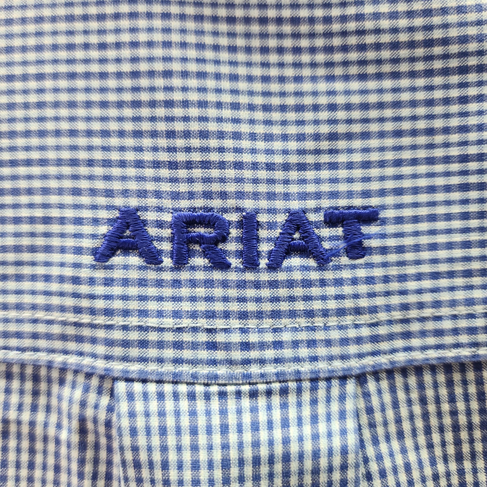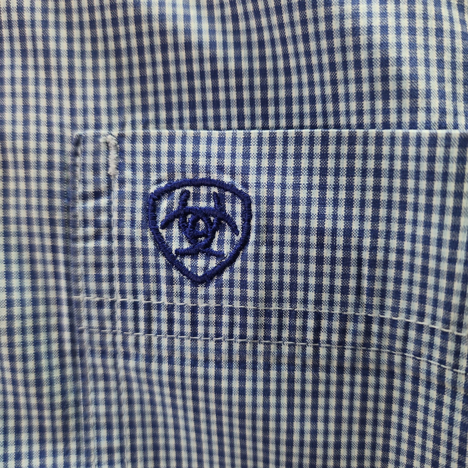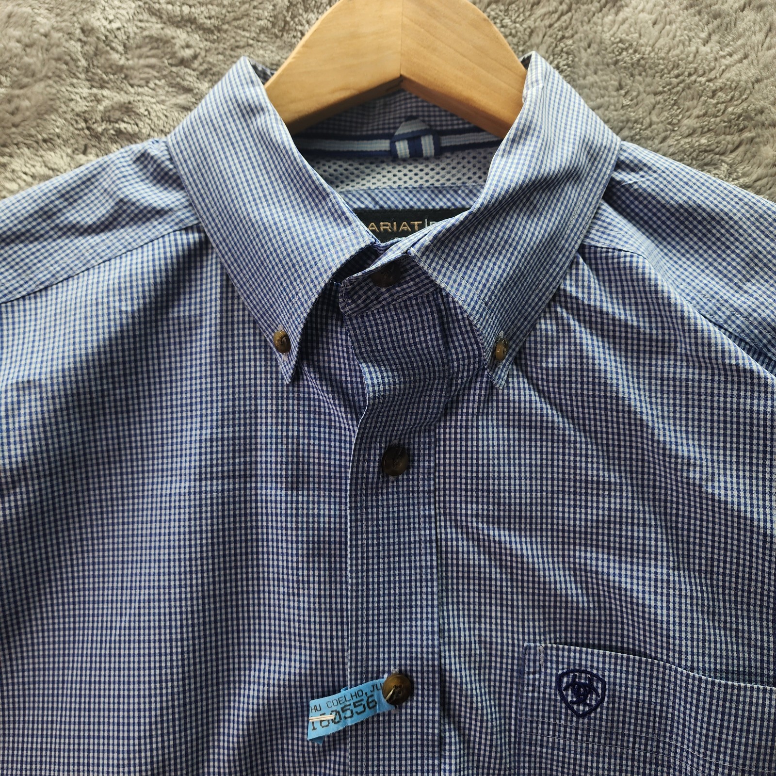 как выглядит Ariat Pro Series Mens L Blue Micro Check Button Down Western Shirt Moisture Wick фото