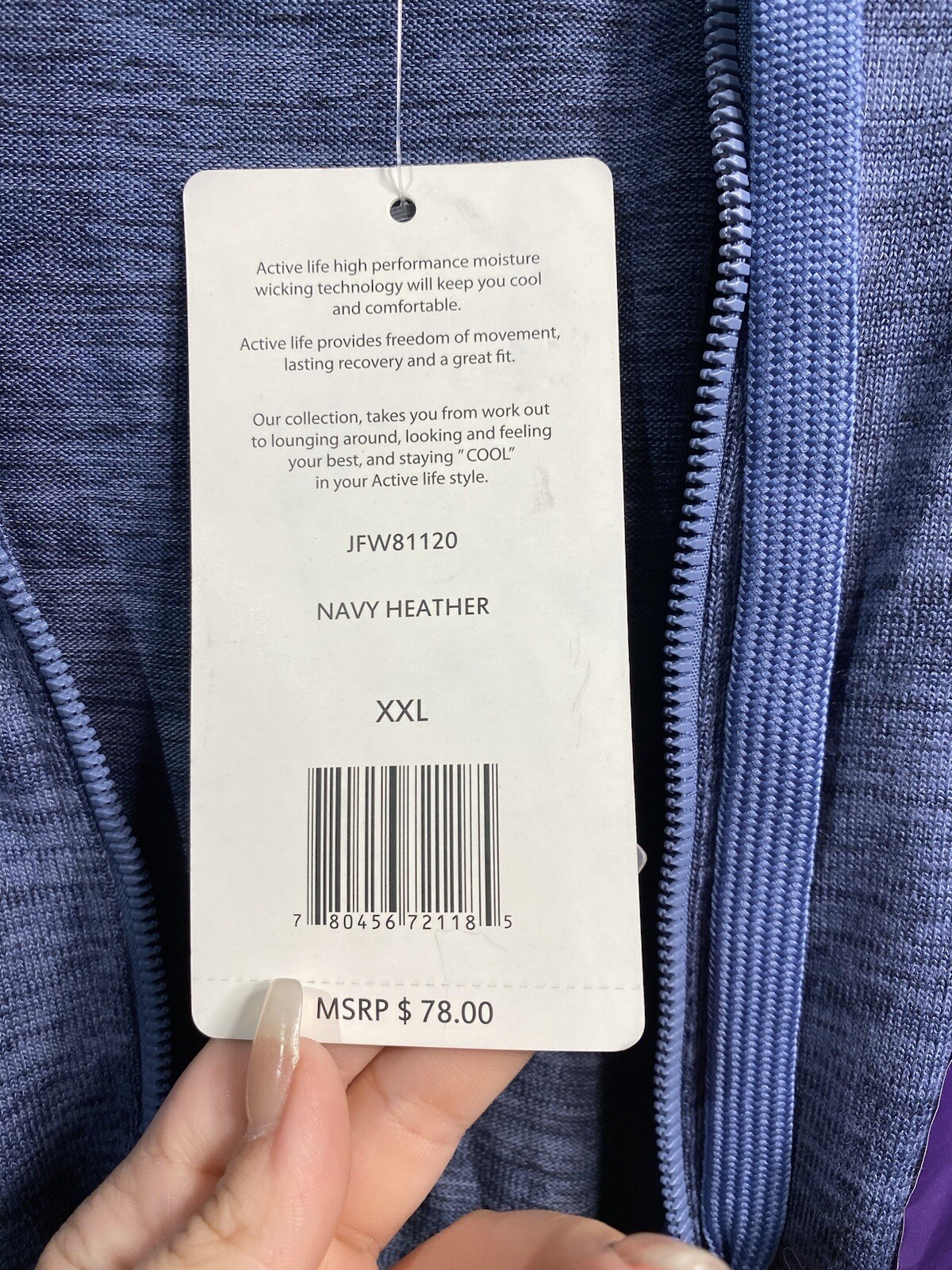 как выглядит active life womens navy heather sleeveless zip up hooded vest size XXL 2XL фото