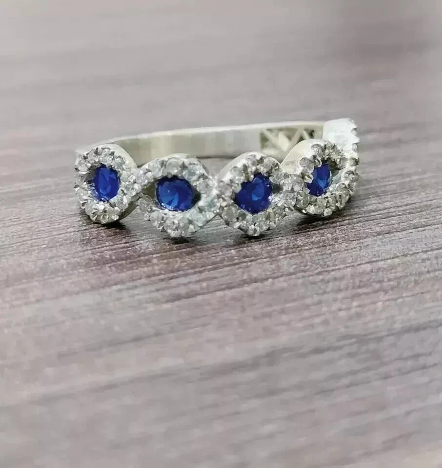 как выглядит 14K White Gold Plated 2Ct Round LabCreated Blue Sapphire Women