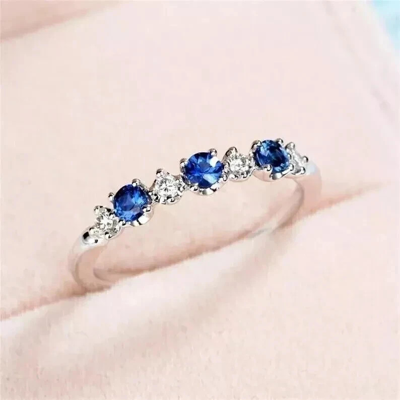 как выглядит 14K White Gold Plated 1Ct Round LabCreated Blue Sapphire Womens Wedding Ring фото