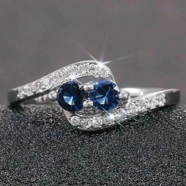 как выглядит 14K White Gold Plated 2Ct Round LabCreated Blue Sapphire Womens Wedding Ring фото
