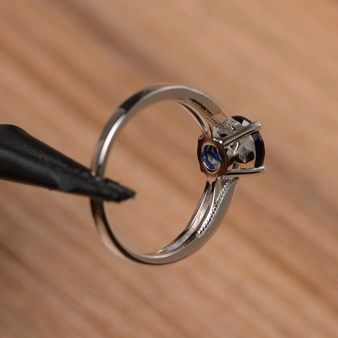 как выглядит LabCreated Blue Sapphire Womens Wedding Ring 14K White Gold Plated 2Ct Round фото