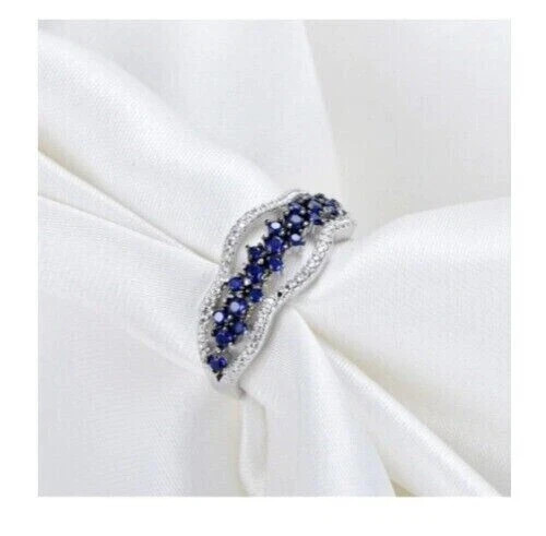 Wedding Ring LabCreated Blue Sapphire 14K White Gold Plated 2Ct Round Women's