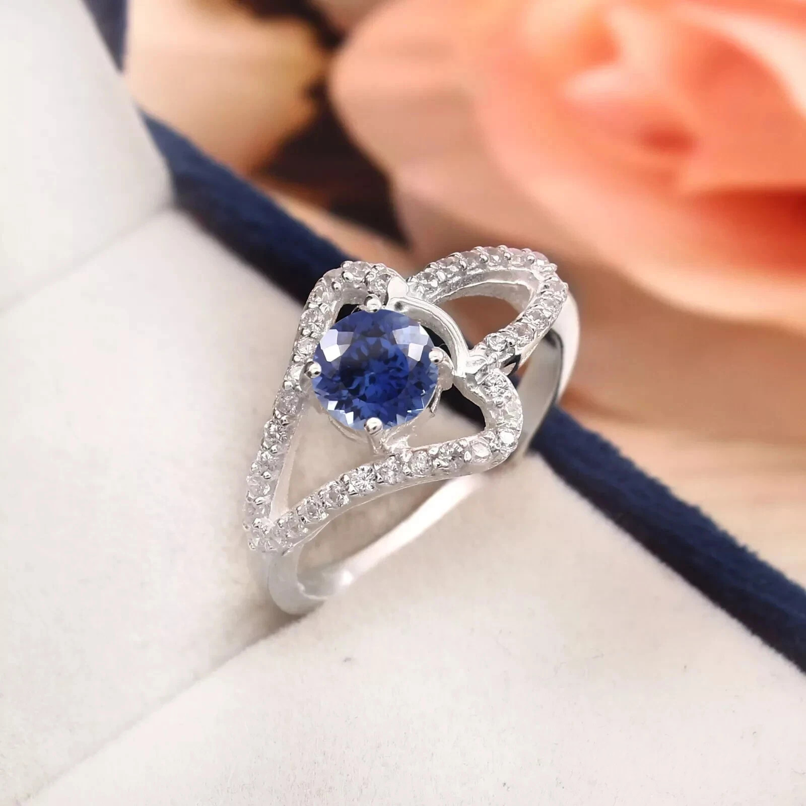 как выглядит Wedding Ring LabCreated Blue Sapphire 14K White Gold Plated 2Ct Round Women