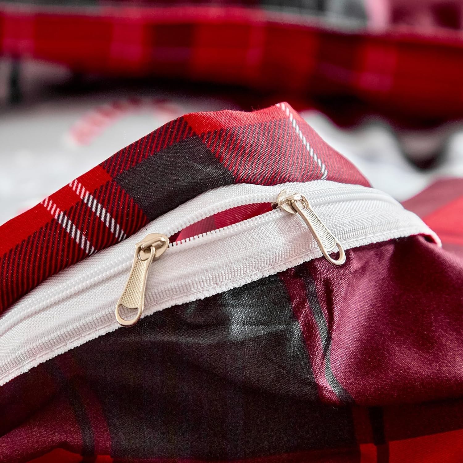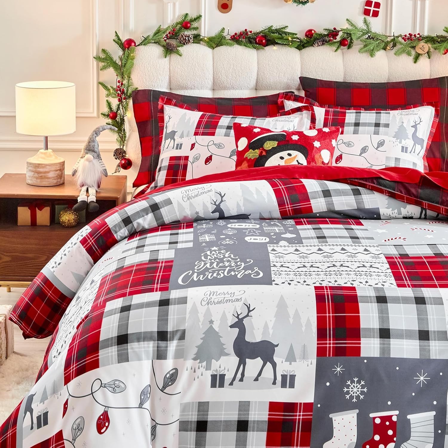 3 Pieces Christmas Quilt King Size, Red Plaid Quilt Bedding Set with 2 Pillow Sh