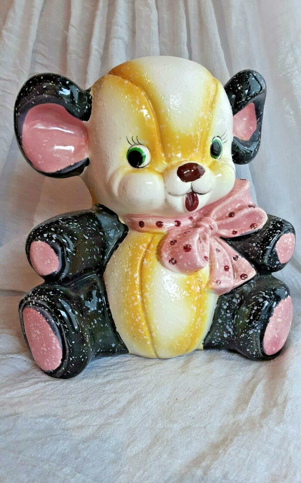 BLACK PINK TEDDY BEAR RETRO 1950s PLANTER BABY NURSERY VINTAGE CERAMIC K3147