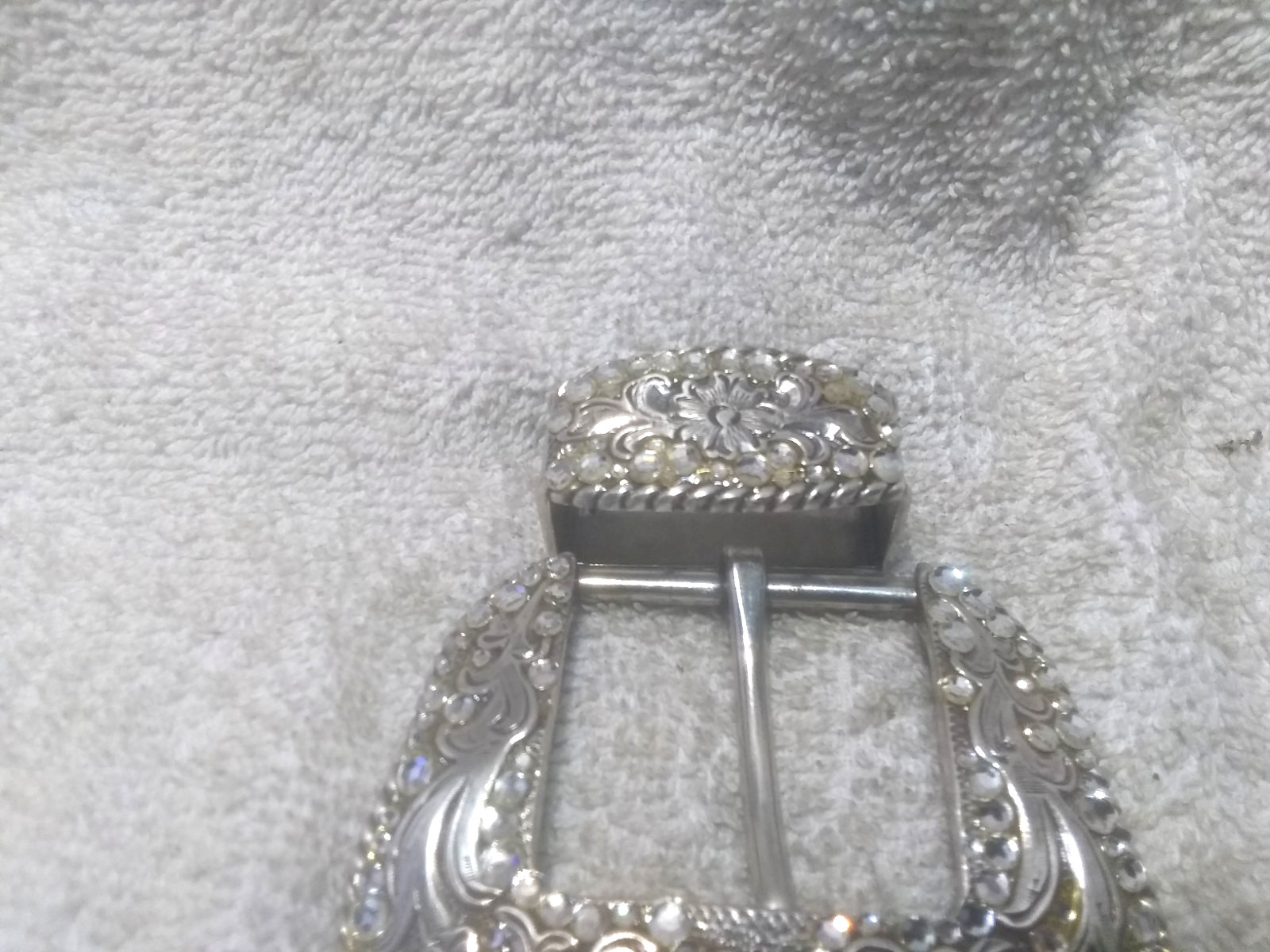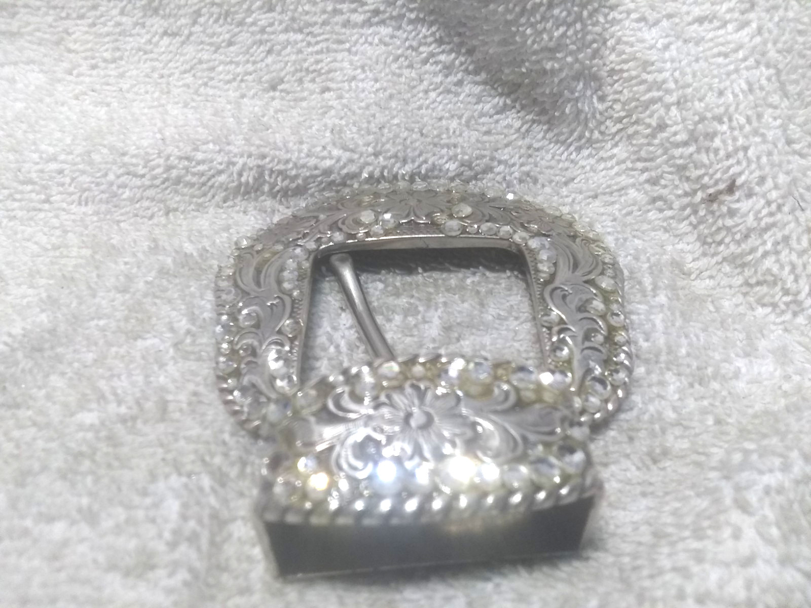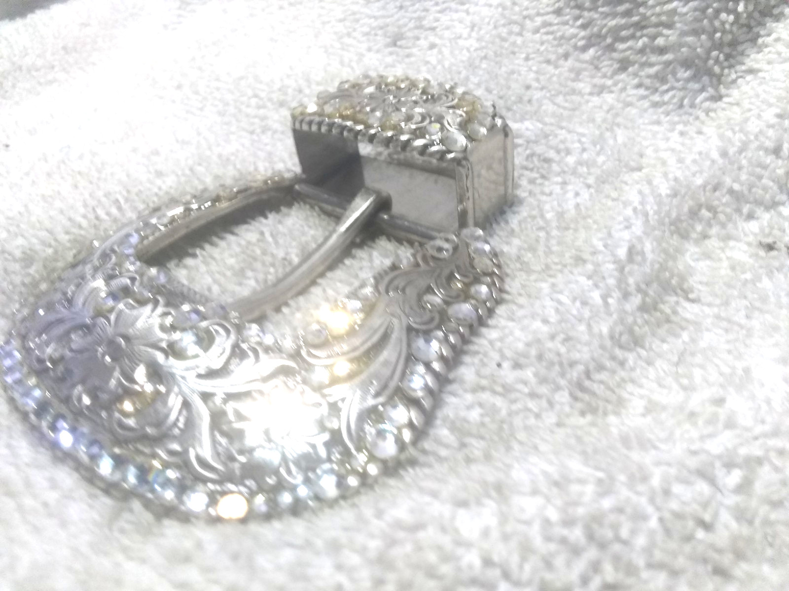 как выглядит Silver Rhinestone Filled Buckle Keeper Replacement Belt Buckle Flower Filigree фото
