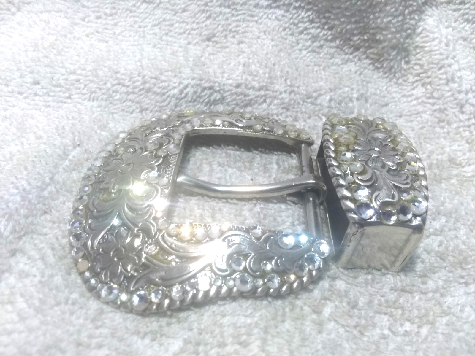 Silver Rhinestone Filled Buckle Keeper Replacement Belt Buckle Flower Filigree