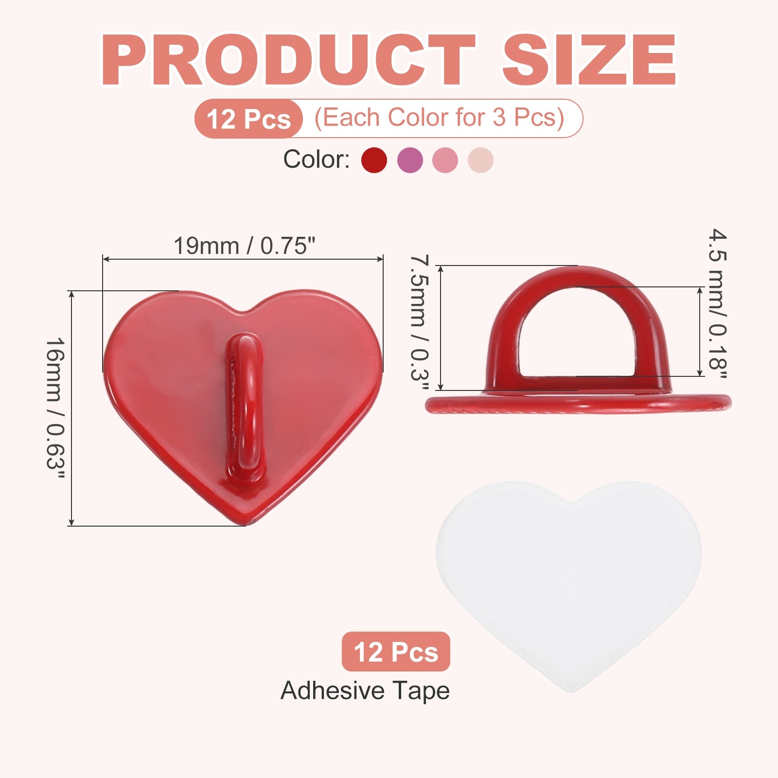 12 Pcs Heart Phone Charm Hook, Red/Rose Red/Dark Pink/Light Pink