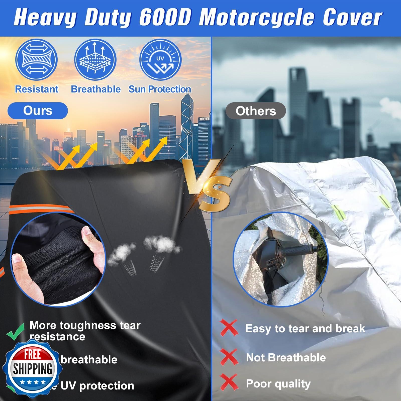 Heavy Duty Motorcycle Cover XL Waterproof Outdoor,600D Power Sports Vehicle C