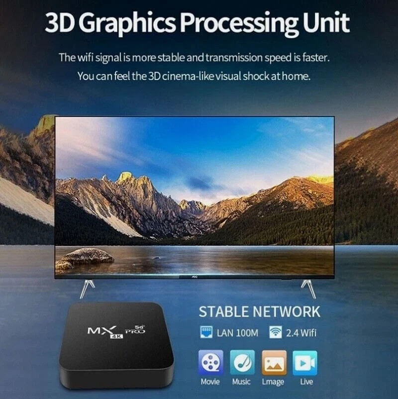 Smart TV Box Android 13.0 Wi-Fi 6 4K UHD Quad Core Media Stream Player MXQ PRO